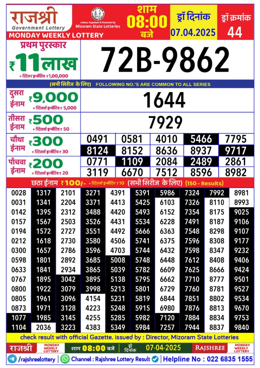 राजश्री लाटरी का रात 8 बजे का रिज़ल्ट दिनांक 23.11.25