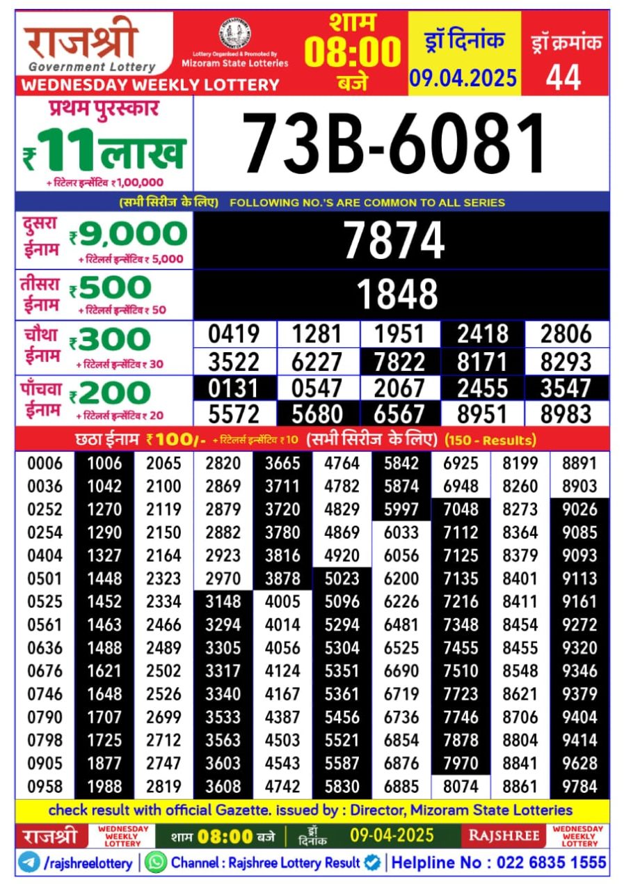 राजश्री लाटरी का रात 8 बजे का रिज़ल्ट दिनांक 25.11.25