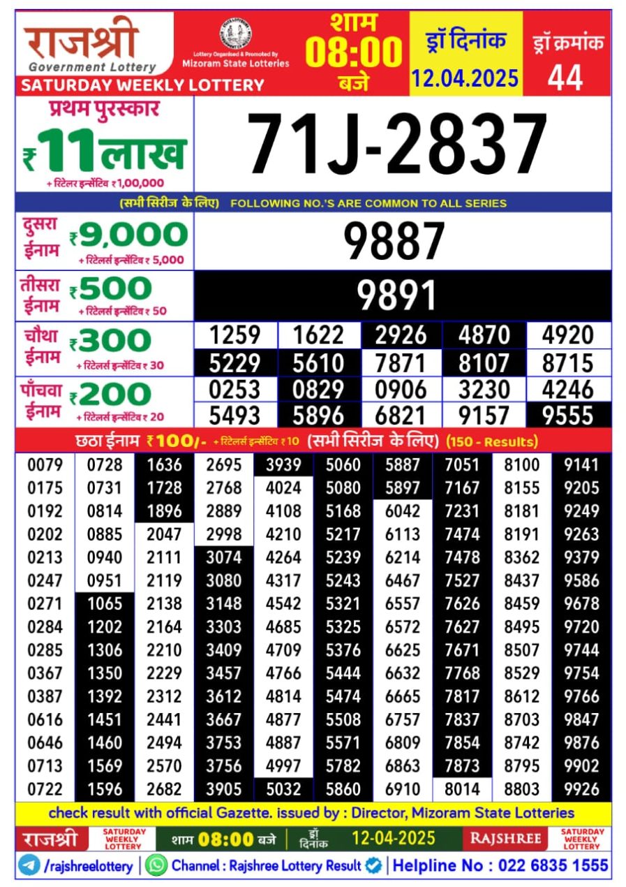 राजश्री लाटरी का रात 8 बजे का रिज़ल्ट दिनांक 28.11.25