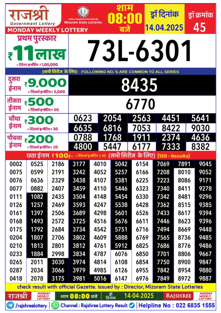 राजश्री लाटरी का रात 8 बजे का रिज़ल्ट दिनांक 30.11.25