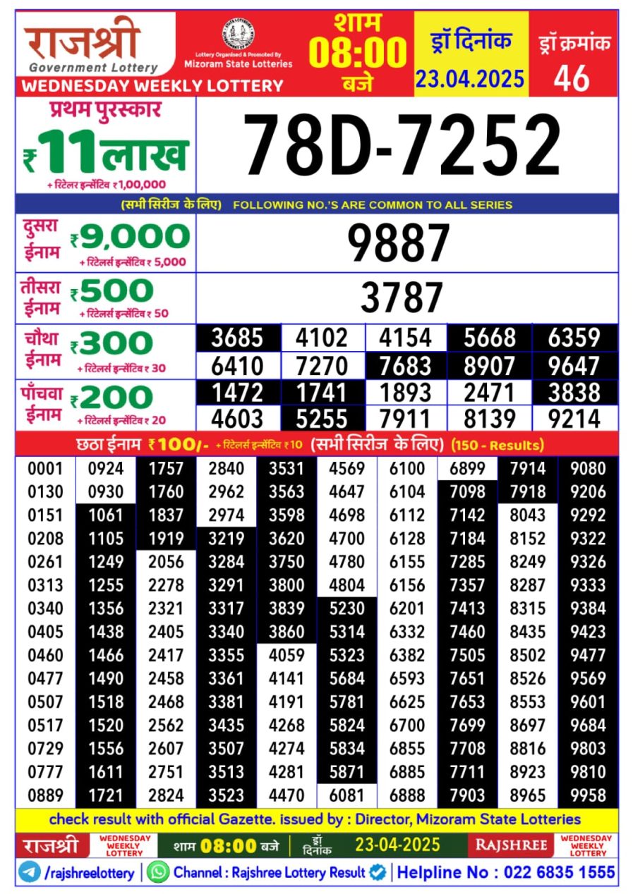 राजश्री लाटरी का रात 8 बजे का रिज़ल्ट दिनांक 09.12.25