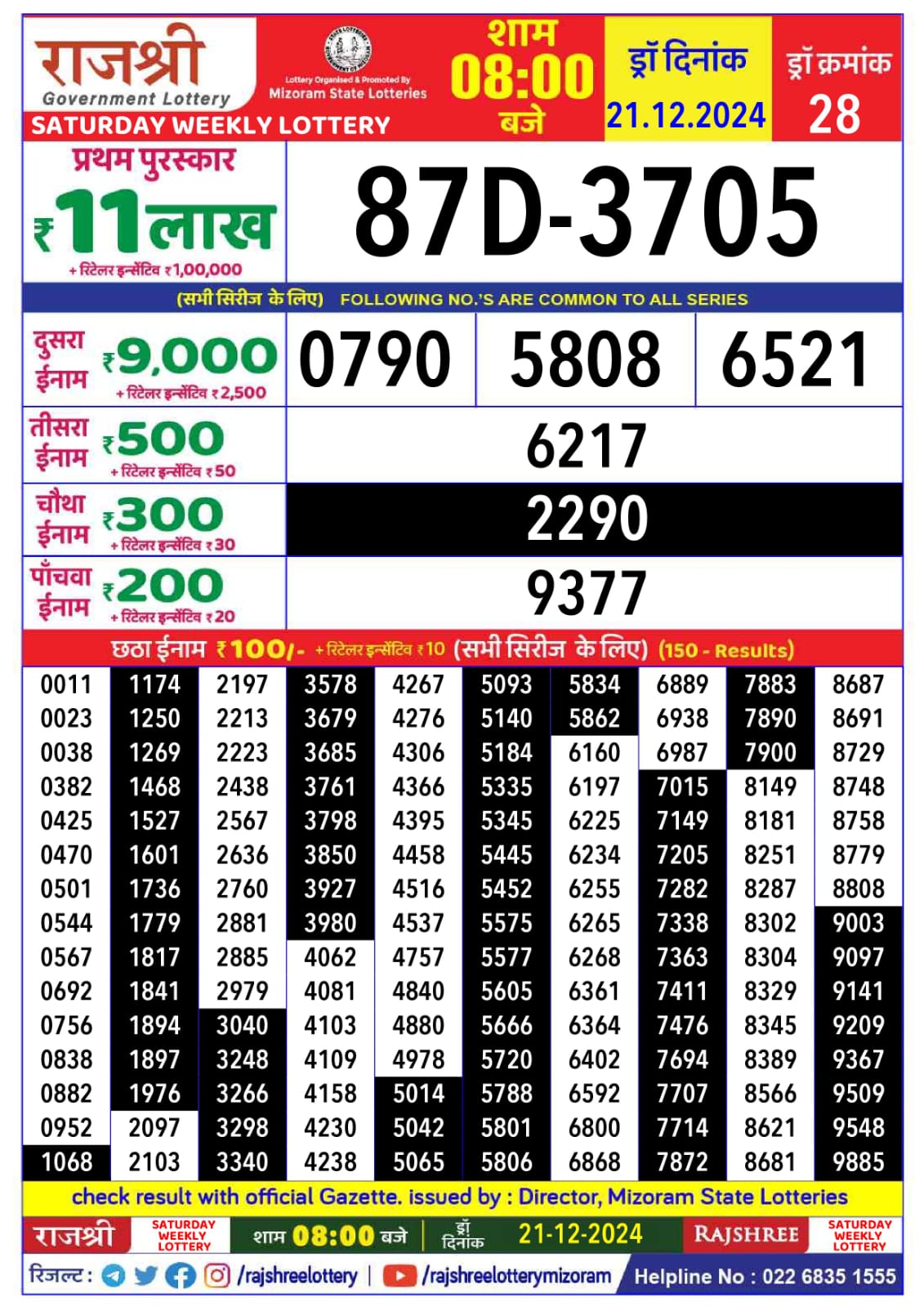राजश्री लाटरी का रात 8 बजे का रिज़ल्ट दिनांक 8.8.25