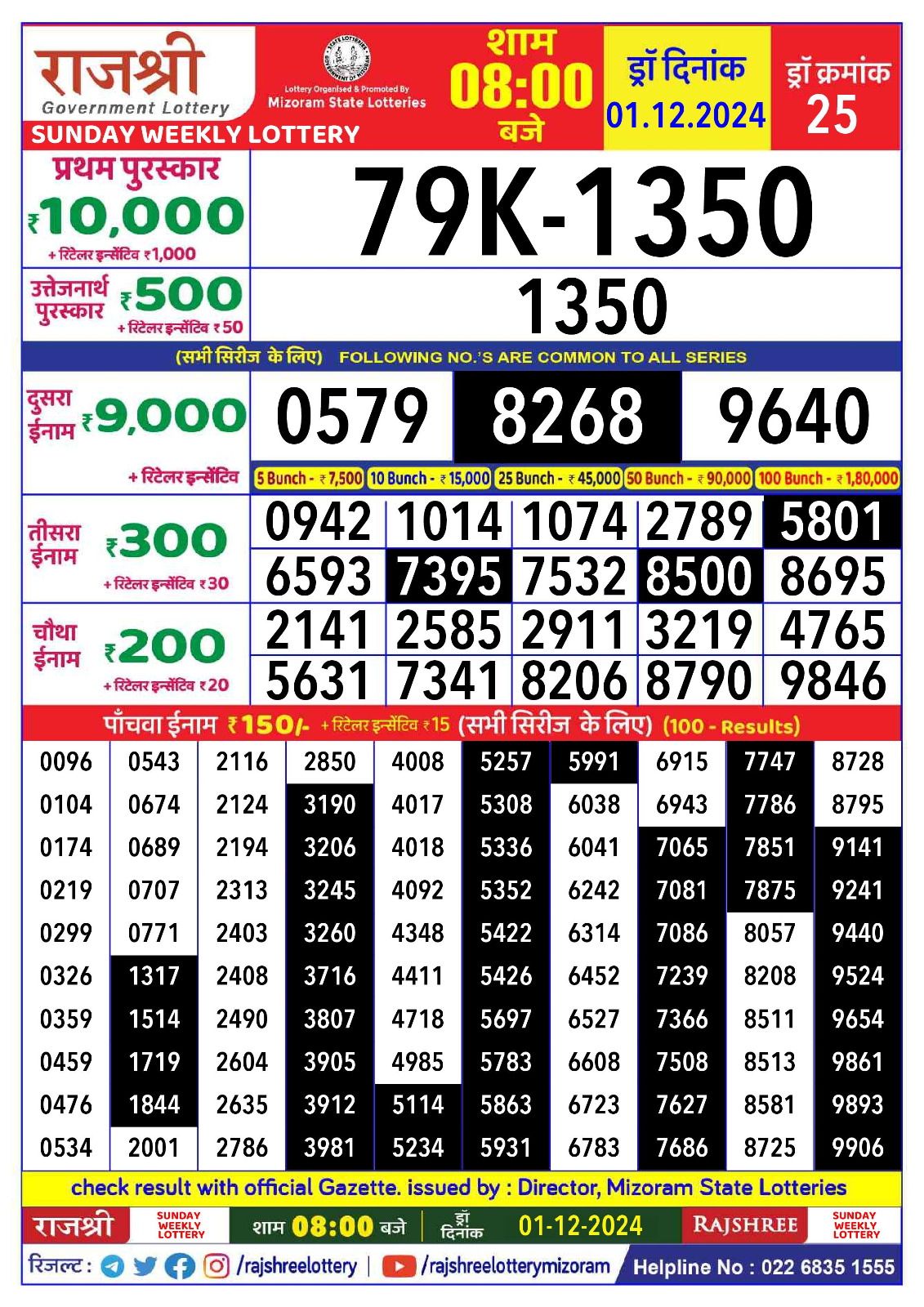 राजश्री लाटरी का रात 8 बजे का रिज़ल्ट दिनांक 27.7.25