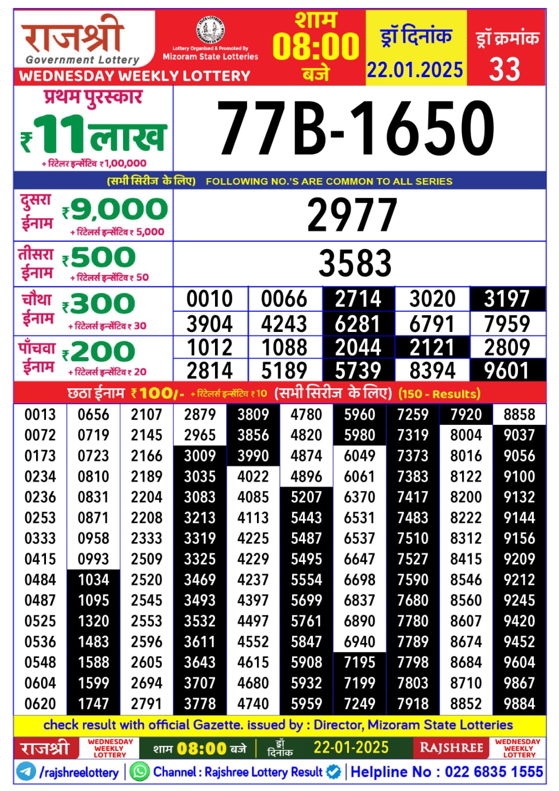 राजश्री लाटरी का रात 8 बजे का रिज़ल्ट दिनांक 09.9.25