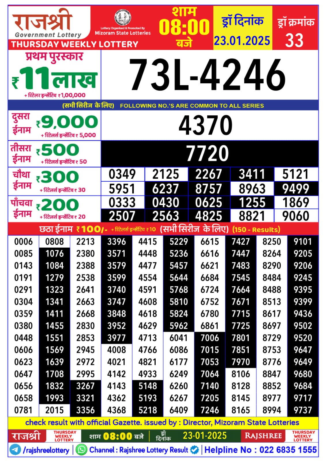 राजश्री लाटरी का रात 8 बजे का रिज़ल्ट दिनांक 10.9.25