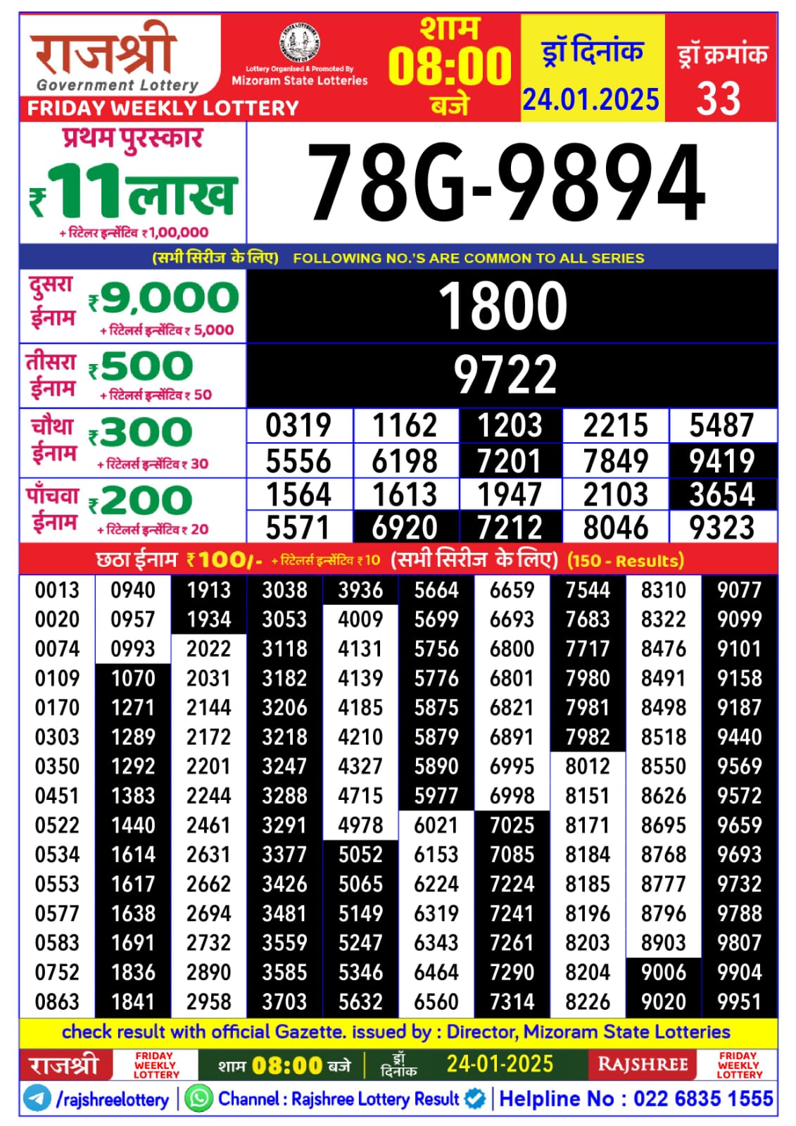 राजश्री लाटरी का रात 8 बजे का रिज़ल्ट दिनांक 11.9.25
