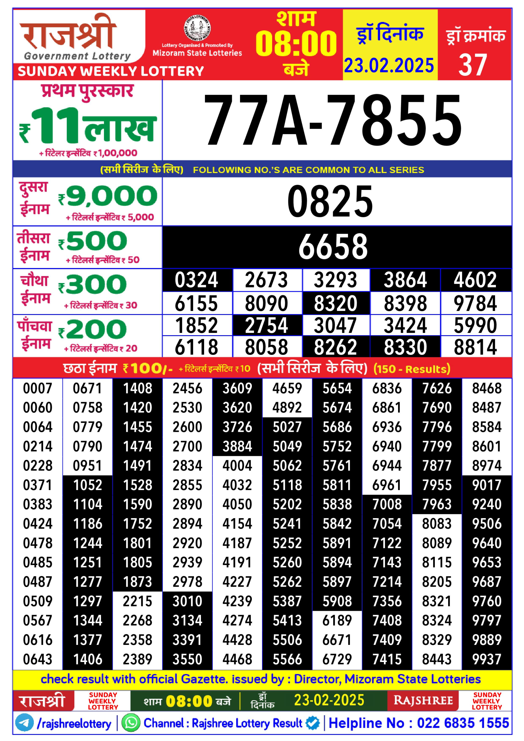 राजश्री लाटरी का रात 8 बजे का रिज़ल्ट दिनांक 11.10.25