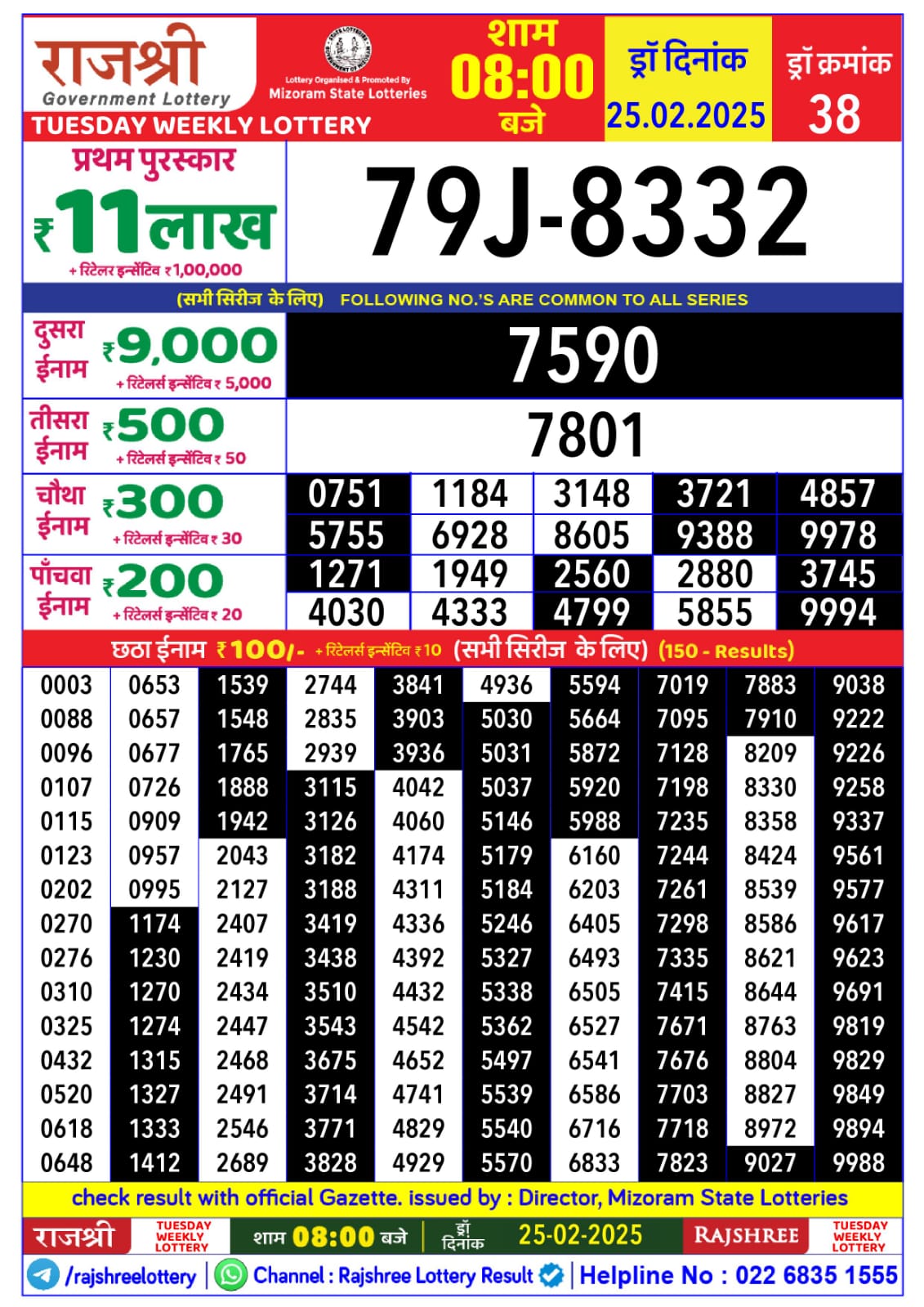 राजश्री लाटरी का रात 8 बजे का रिज़ल्ट दिनांक 13.10.25