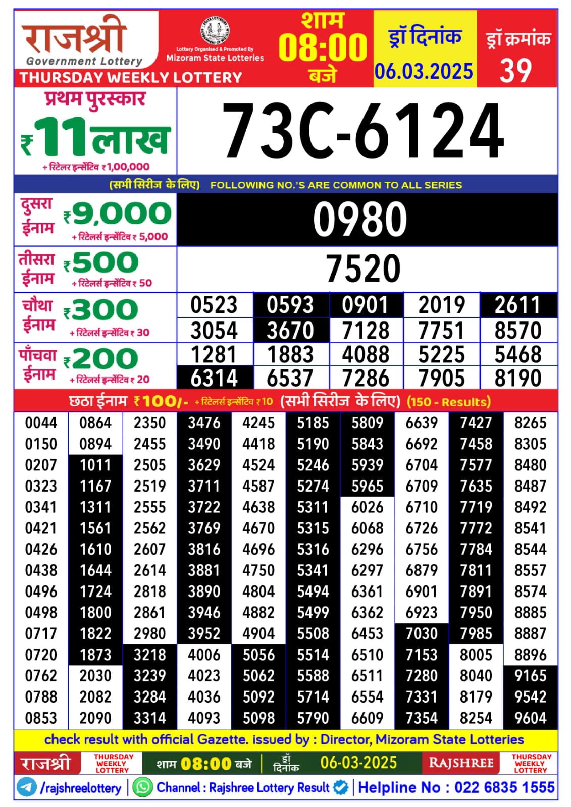राजश्री लाटरी का रात 8 बजे का रिज़ल्ट दिनांक 22.10.25