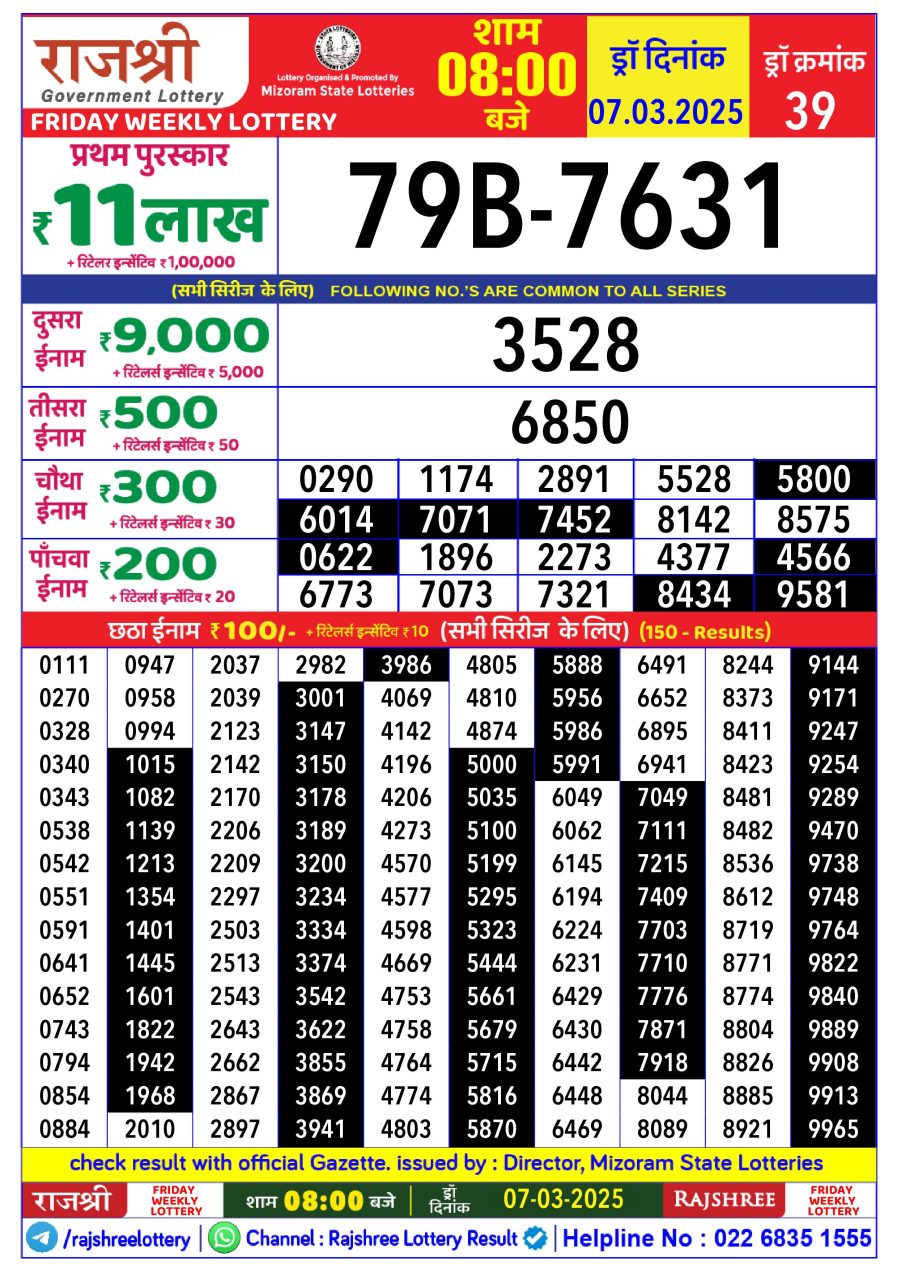 राजश्री लाटरी का रात 8 बजे का रिज़ल्ट दिनांक 23.10.25