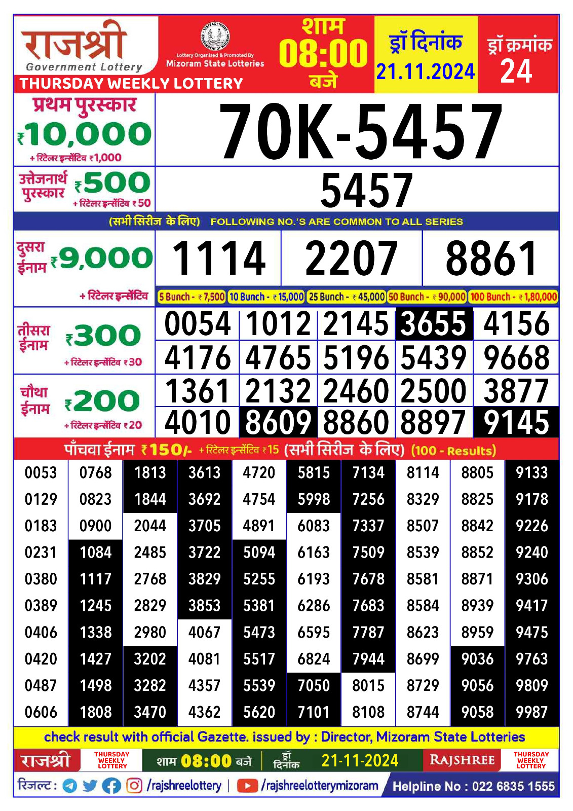राजश्री लाटरी का रात 8 बजे का रिज़ल्ट दिनांक 31.7.25