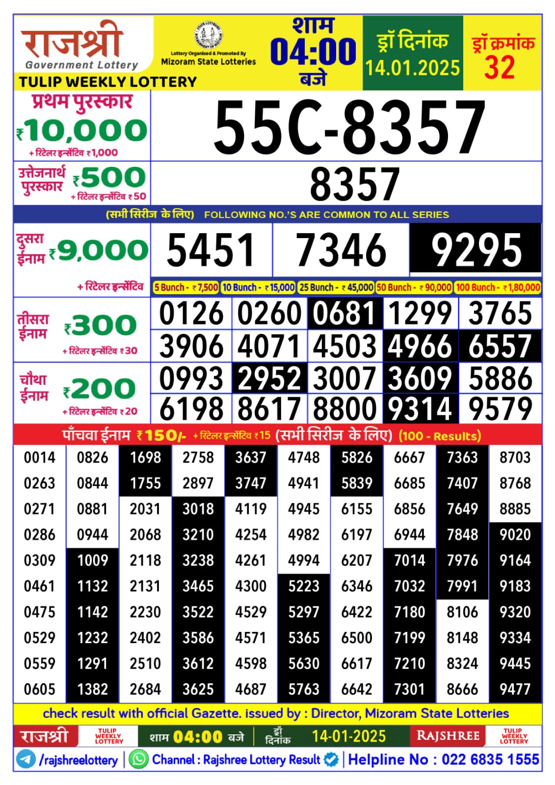 राजश्री लाटरी का 4 बजे का रिज़ल्ट दिनांक 31.10.25