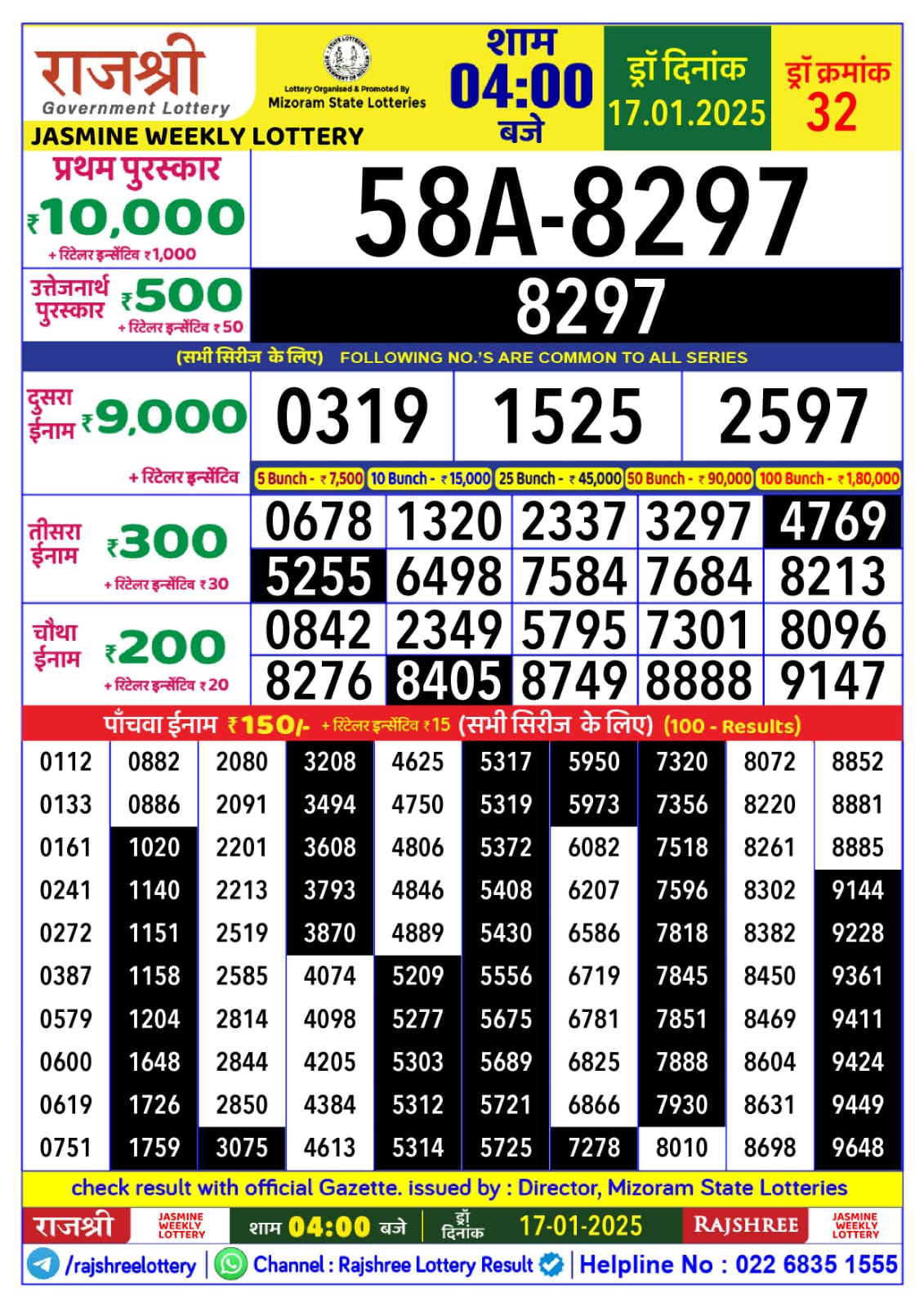 राजश्री लाटरी का 4 बजे का रिज़ल्ट दिनांक 03.11.25