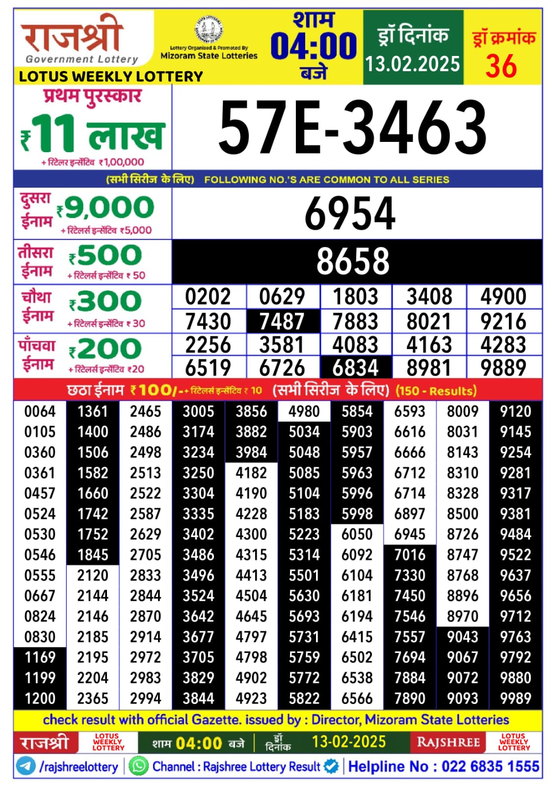 राजश्री लाटरी का 4 बजे का रिज़ल्ट दिनांक 29.11.25