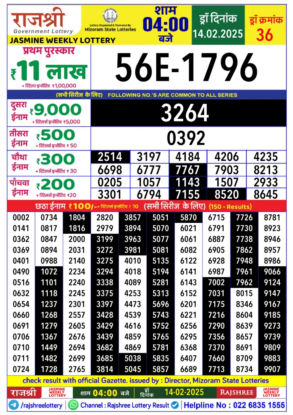 राजश्री लाटरी का 4 बजे का रिज़ल्ट दिनांक 30.11.25