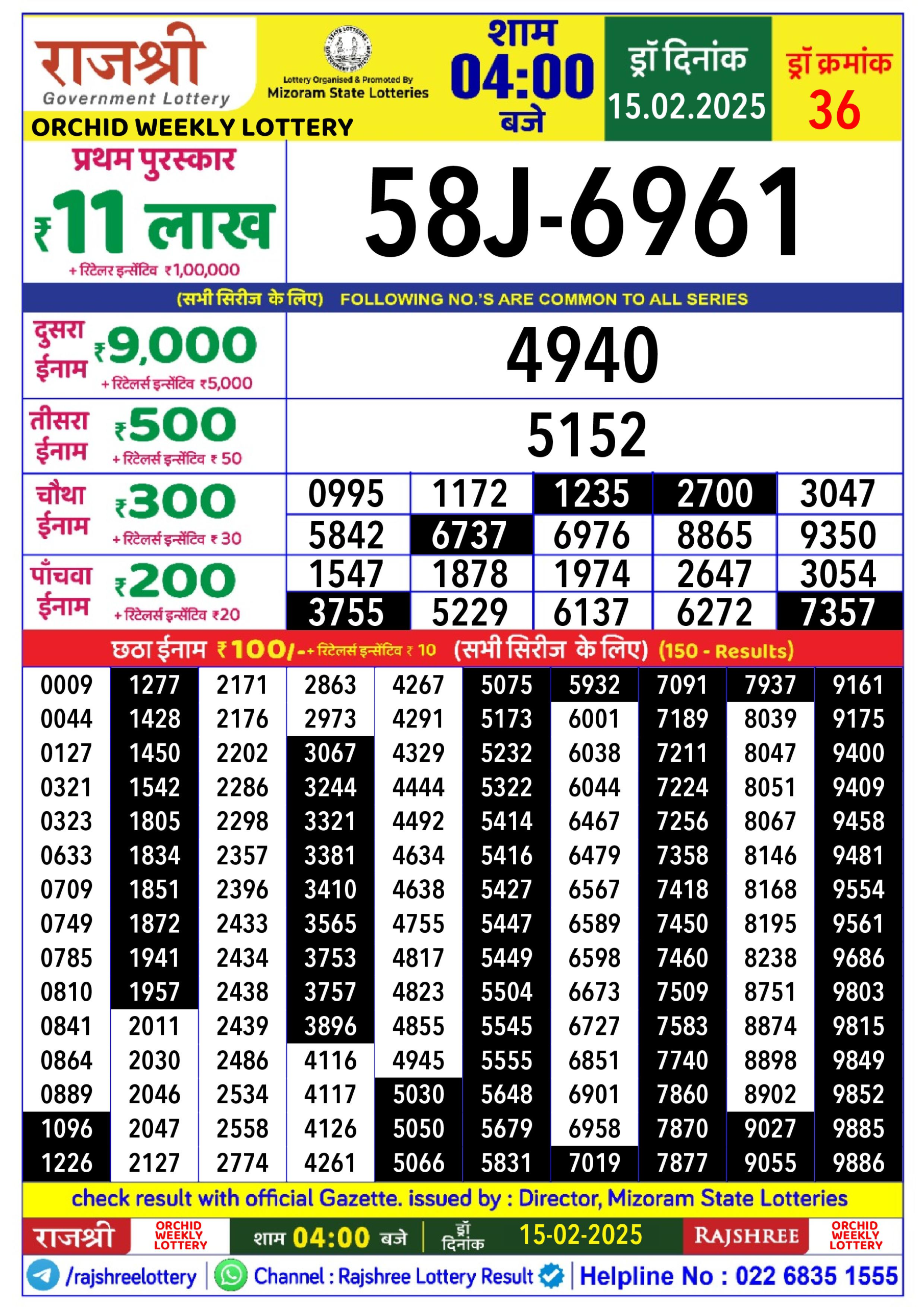 राजश्री लाटरी का 4 बजे का रिज़ल्ट दिनांक 01.12.25