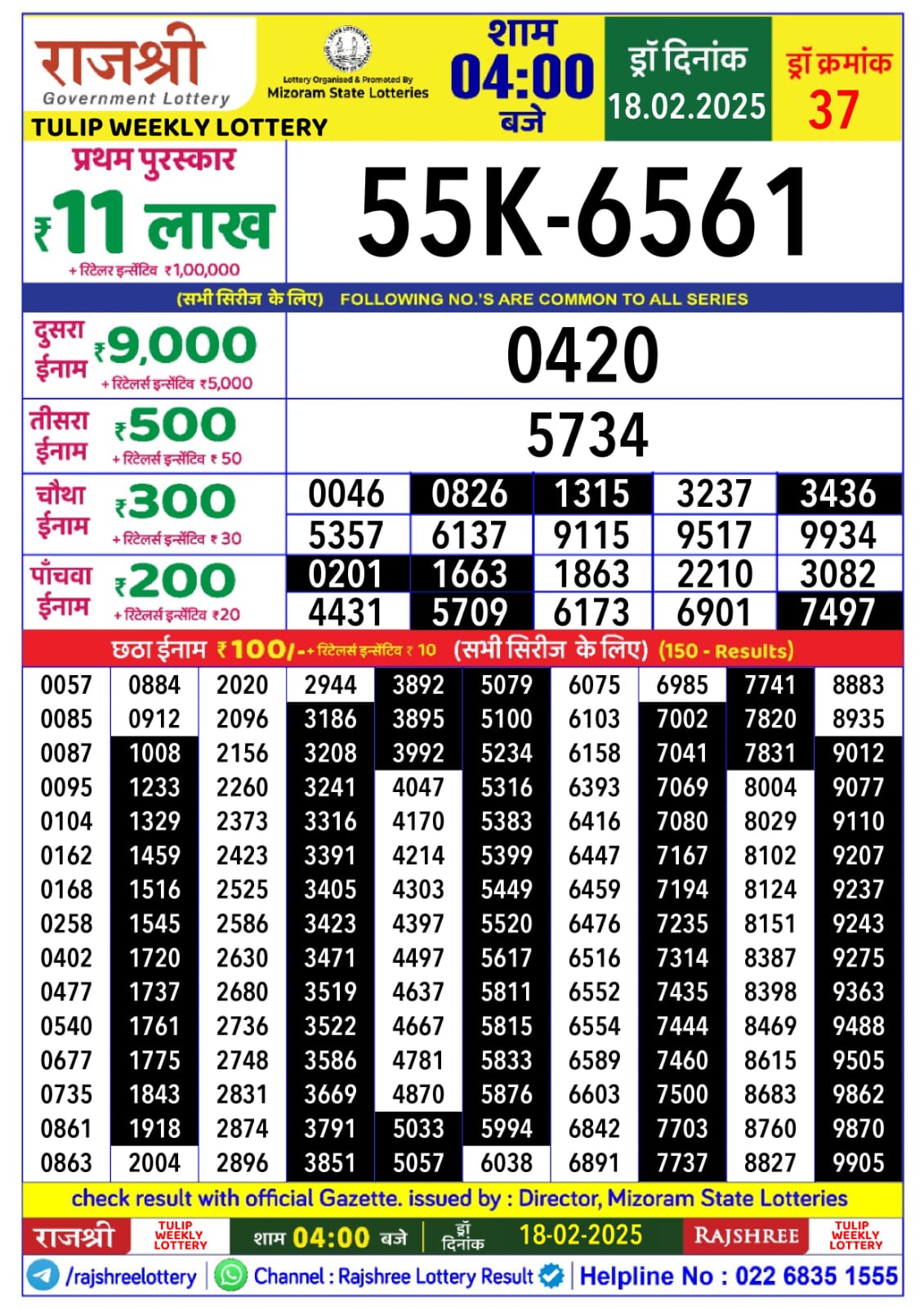 राजश्री लाटरी का 4 बजे का रिज़ल्ट दिनांक 04.12.25