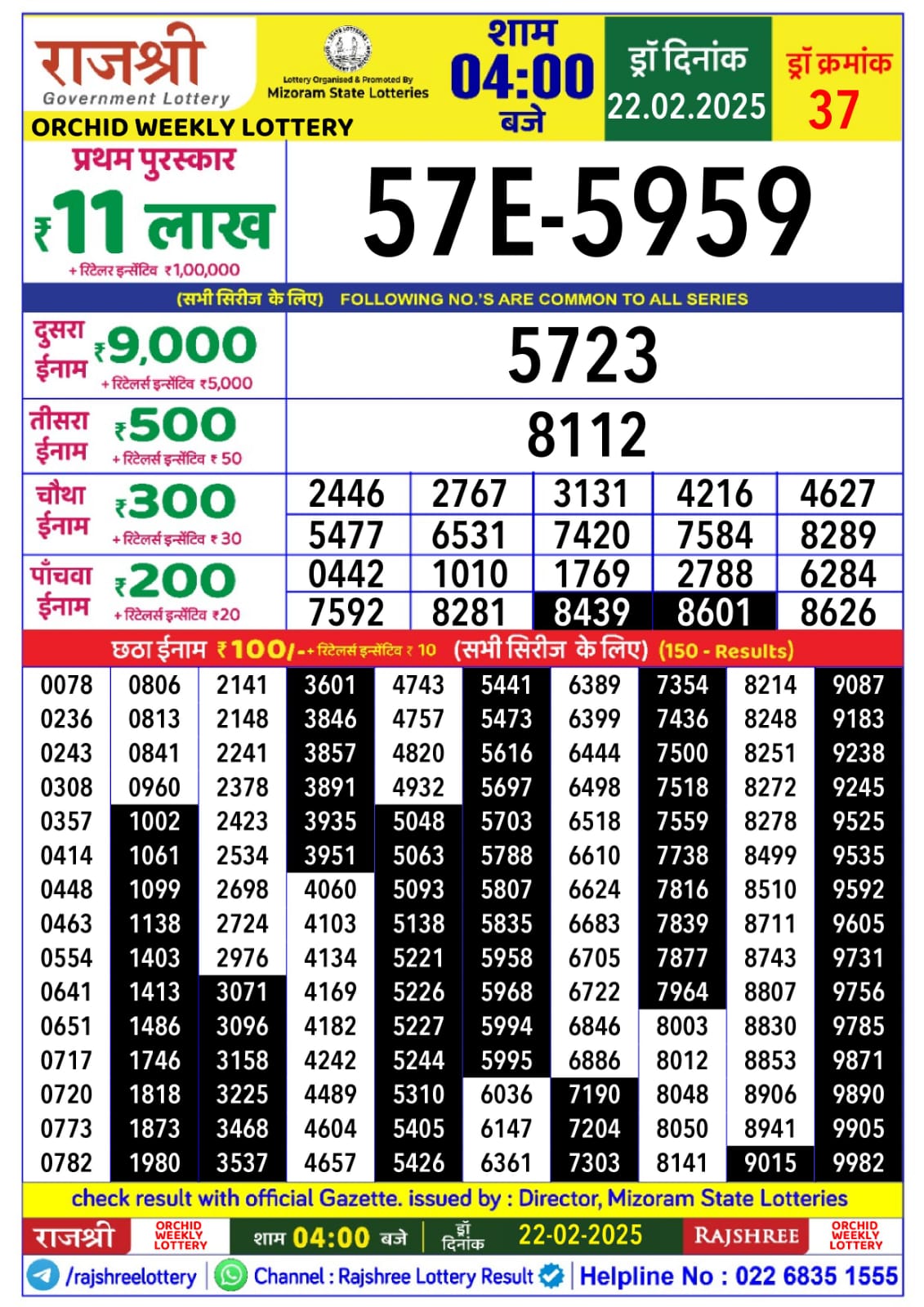 राजश्री लाटरी का 4 बजे का रिज़ल्ट दिनांक 08.12.25