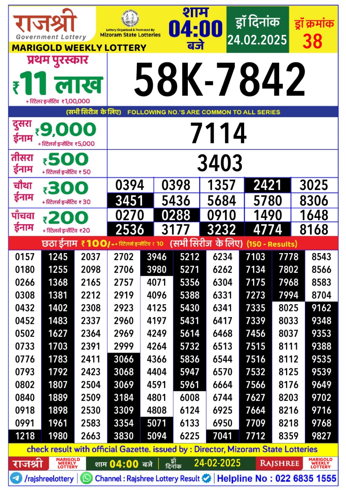 राजश्री लाटरी का 4 बजे का रिज़ल्ट दिनांक 10.12.25