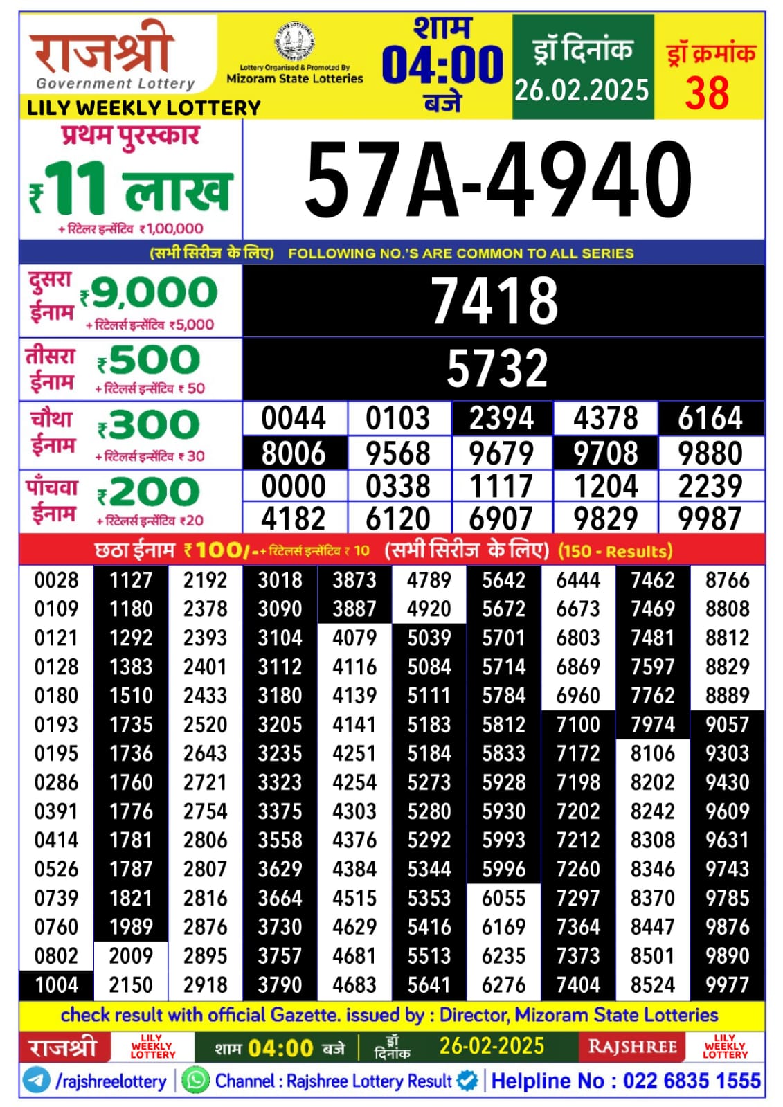राजश्री लाटरी का 4 बजे का रिज़ल्ट दिनांक 12.12.25