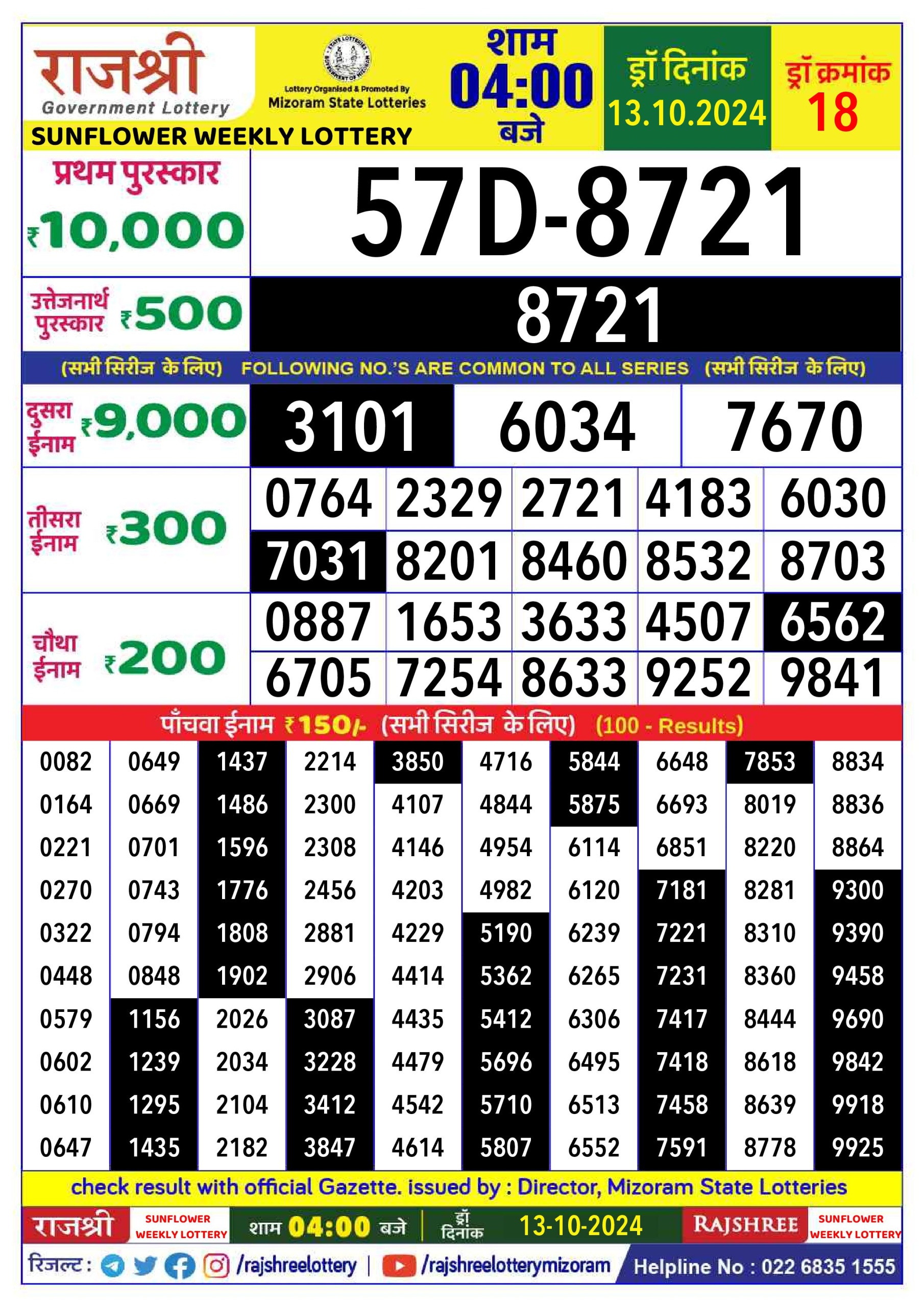 राजश्री लाटरी का 4 बजे का रिज़ल्ट दिनांक 9.8.25