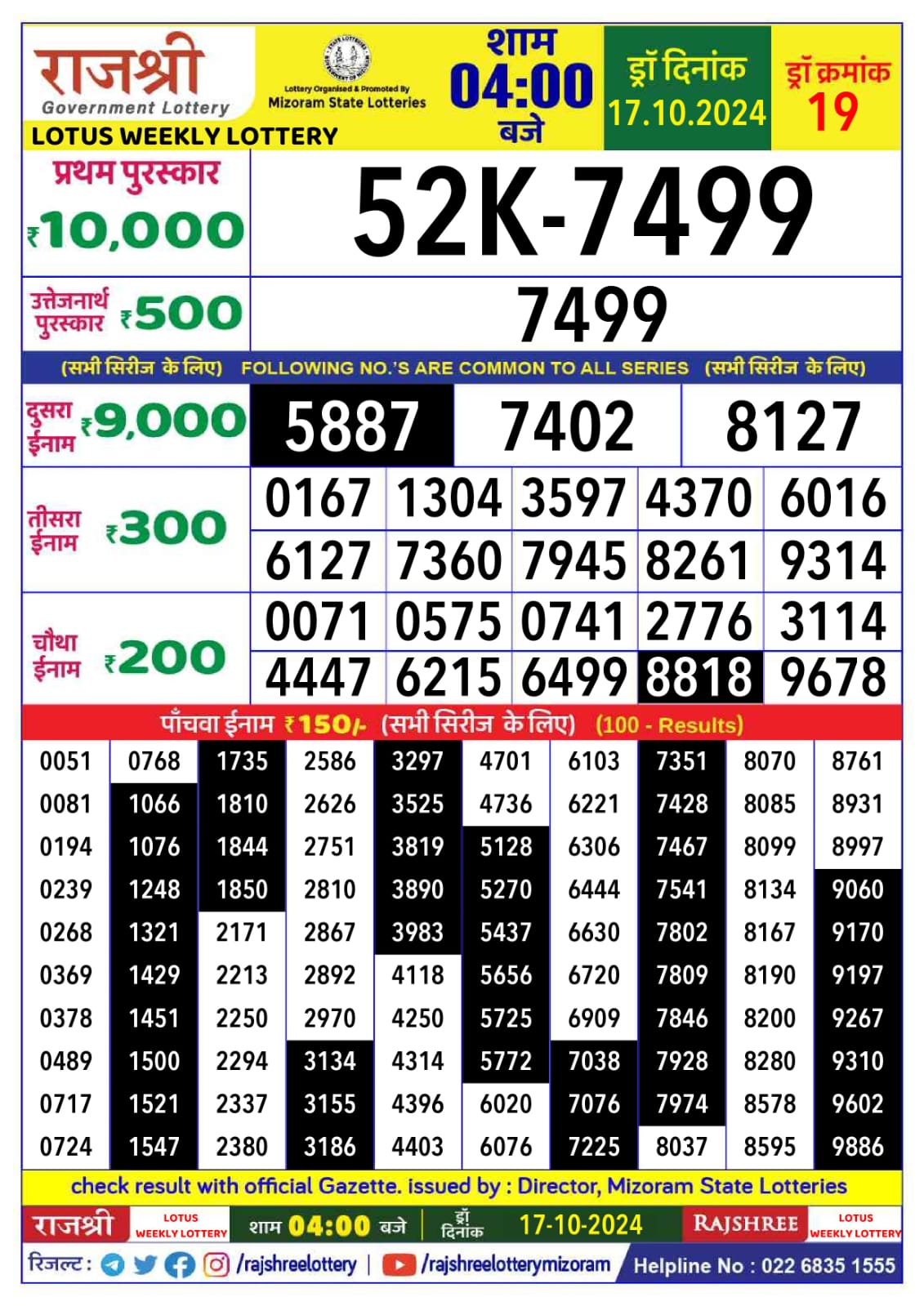 राजश्री लाटरी का 4 बजे का रिज़ल्ट दिनांक 5.8.25