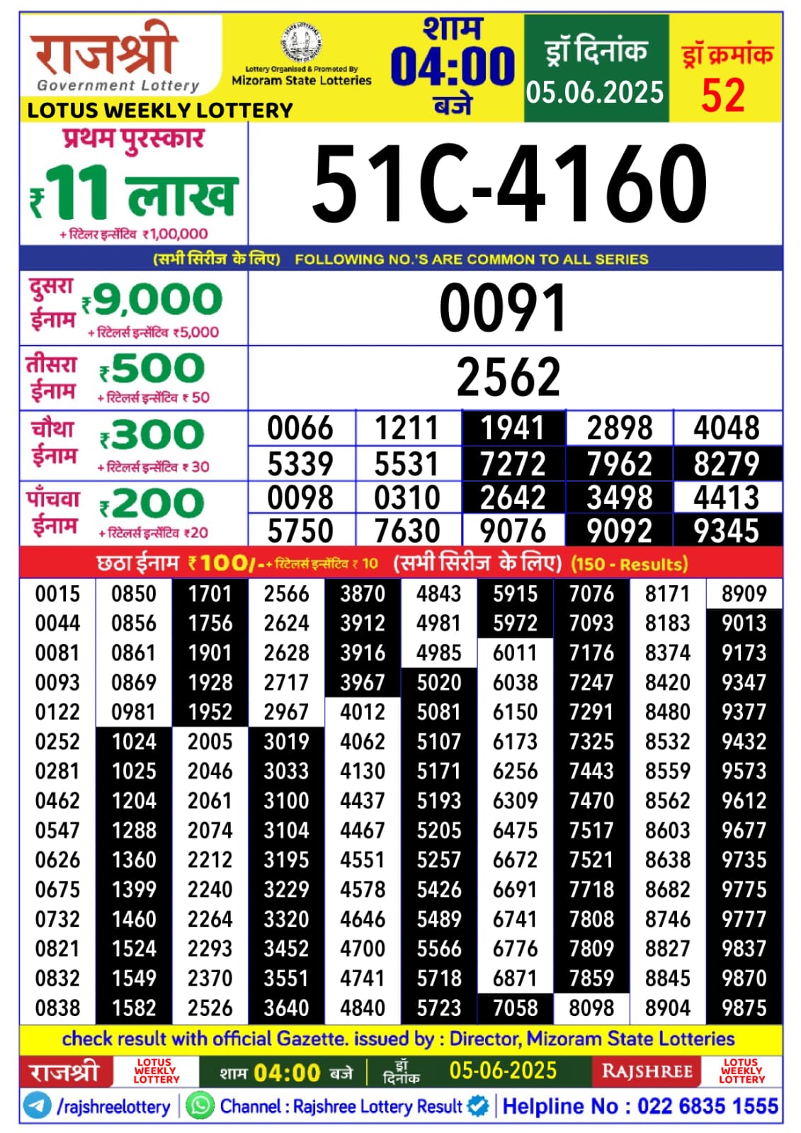 राजश्री लाटरी का 4 बजे का रिज़ल्ट दिनांक 5.6.25
