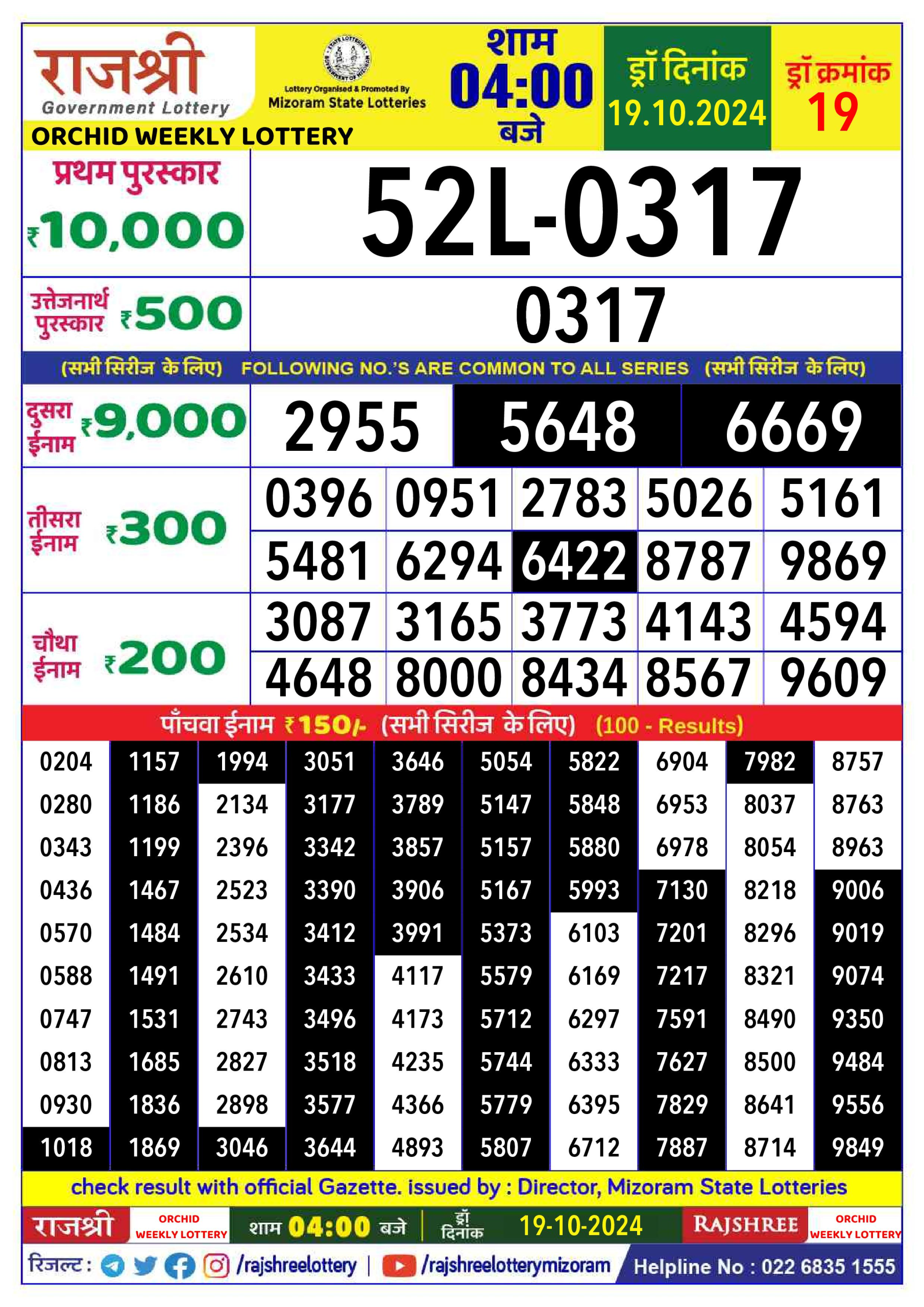 राजश्री लाटरी का 4 बजे का रिज़ल्ट दिनांक 3.8.25