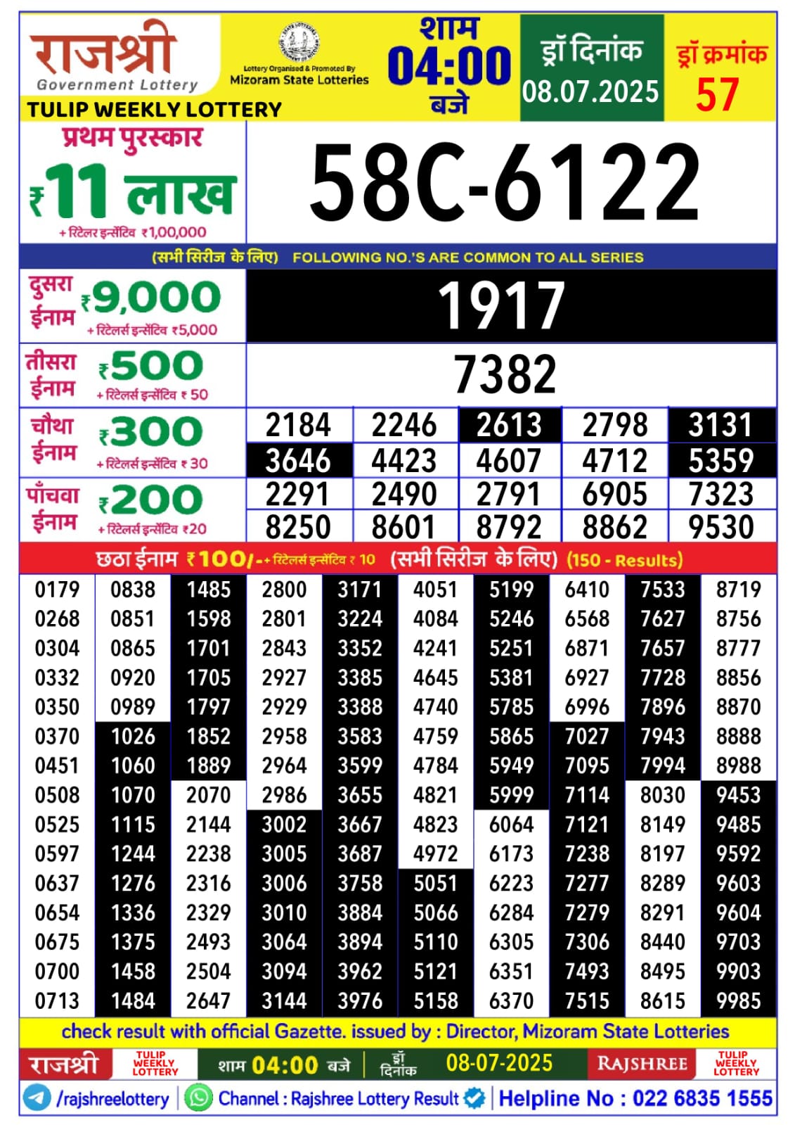 राजश्री लाटरी का 4 बजे का रिज़ल्ट दिनांक 08.7.25