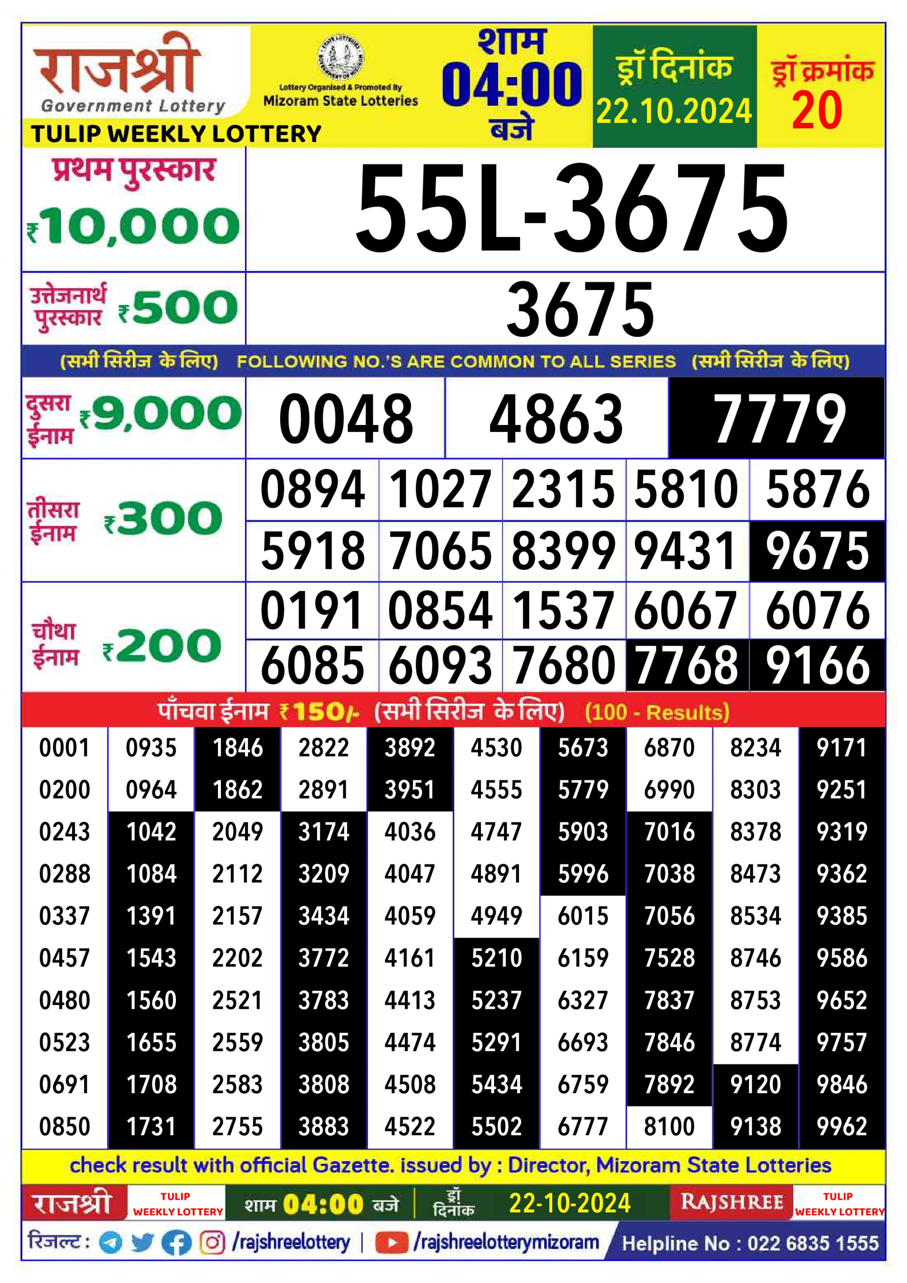 राजश्री लाटरी का 4 बजे का रिज़ल्ट दिनांक 01.9.25