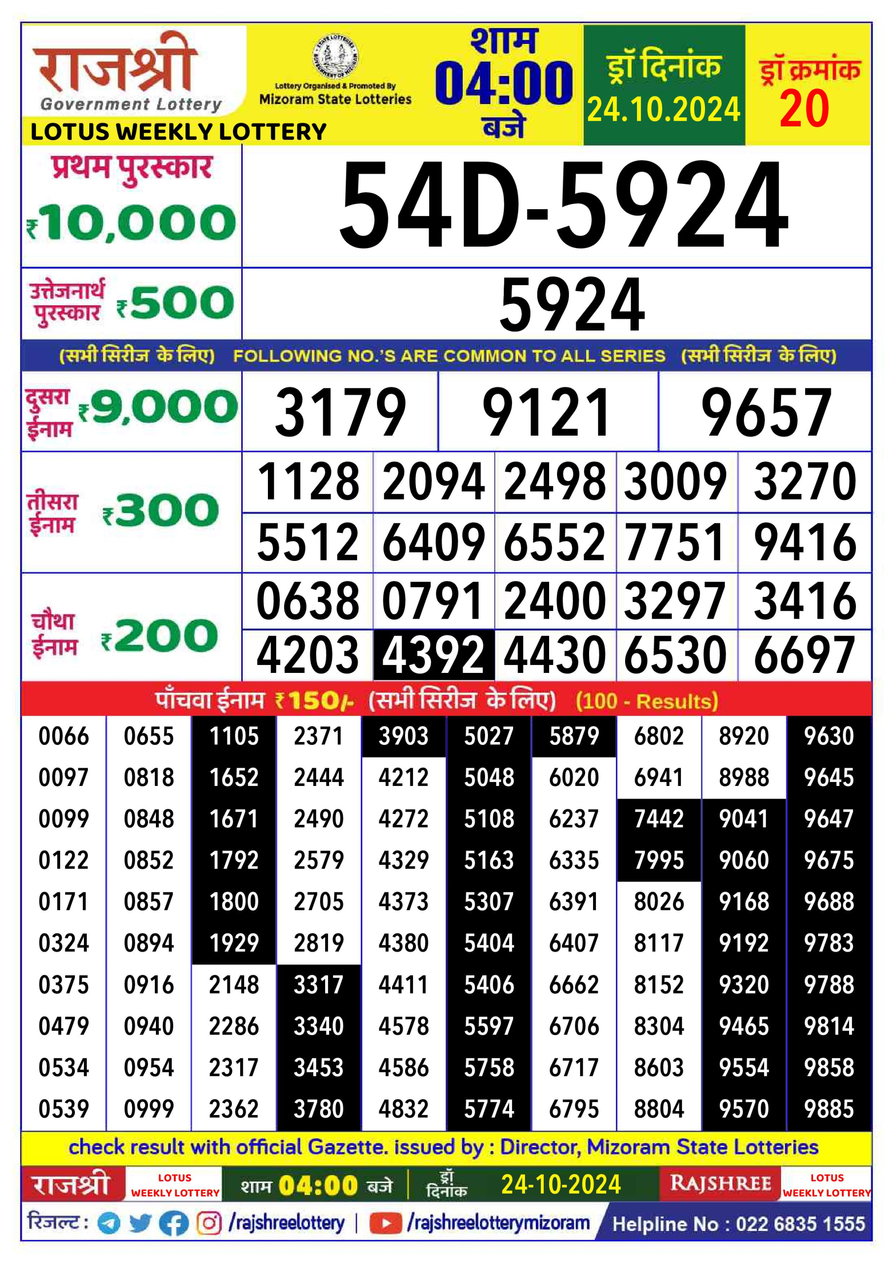 राजश्री लाटरी का 4 बजे का रिज़ल्ट दिनांक 30.8.25