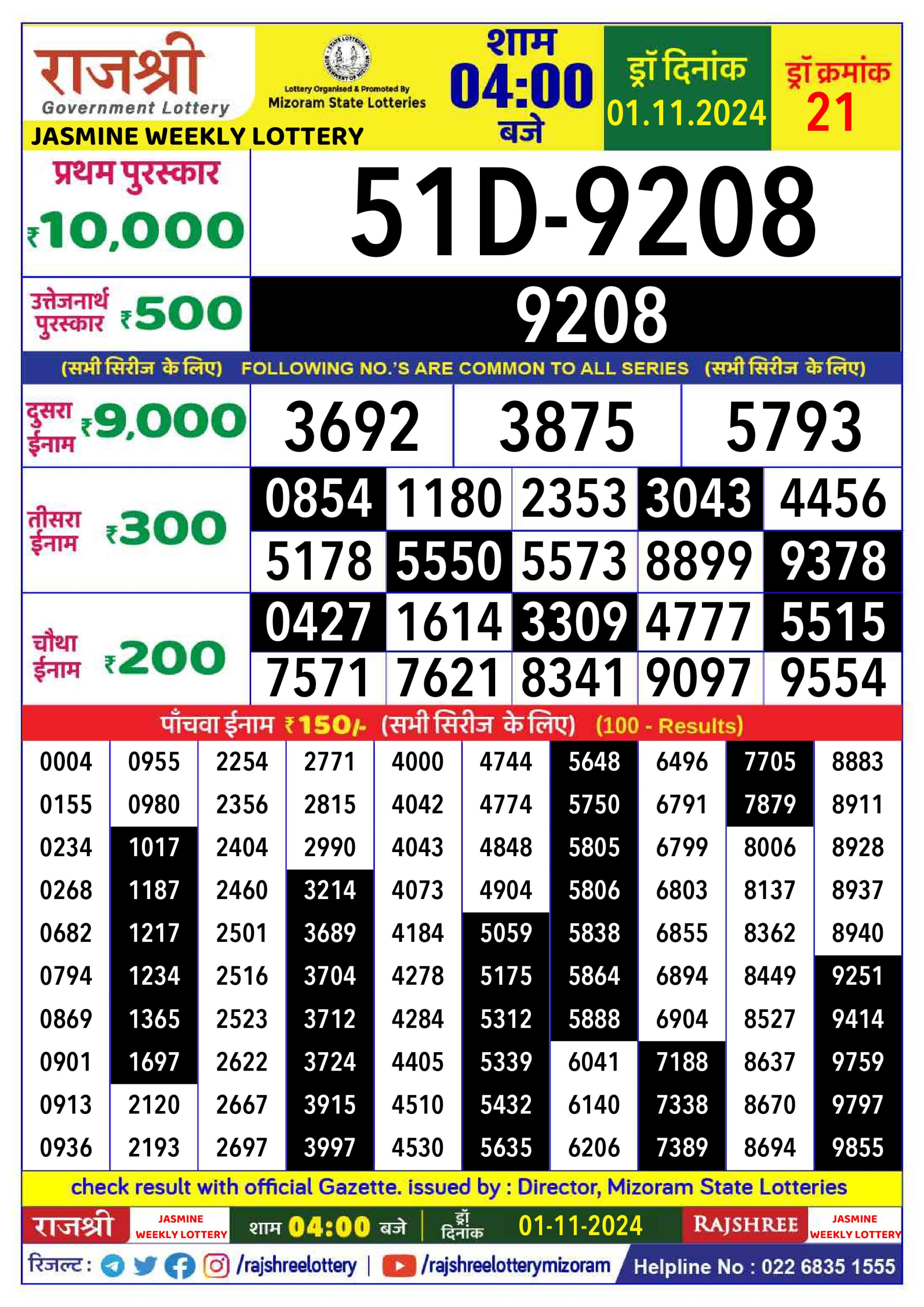 राजश्री लाटरी का 4 बजे का रिज़ल्ट दिनांक 22.8.25