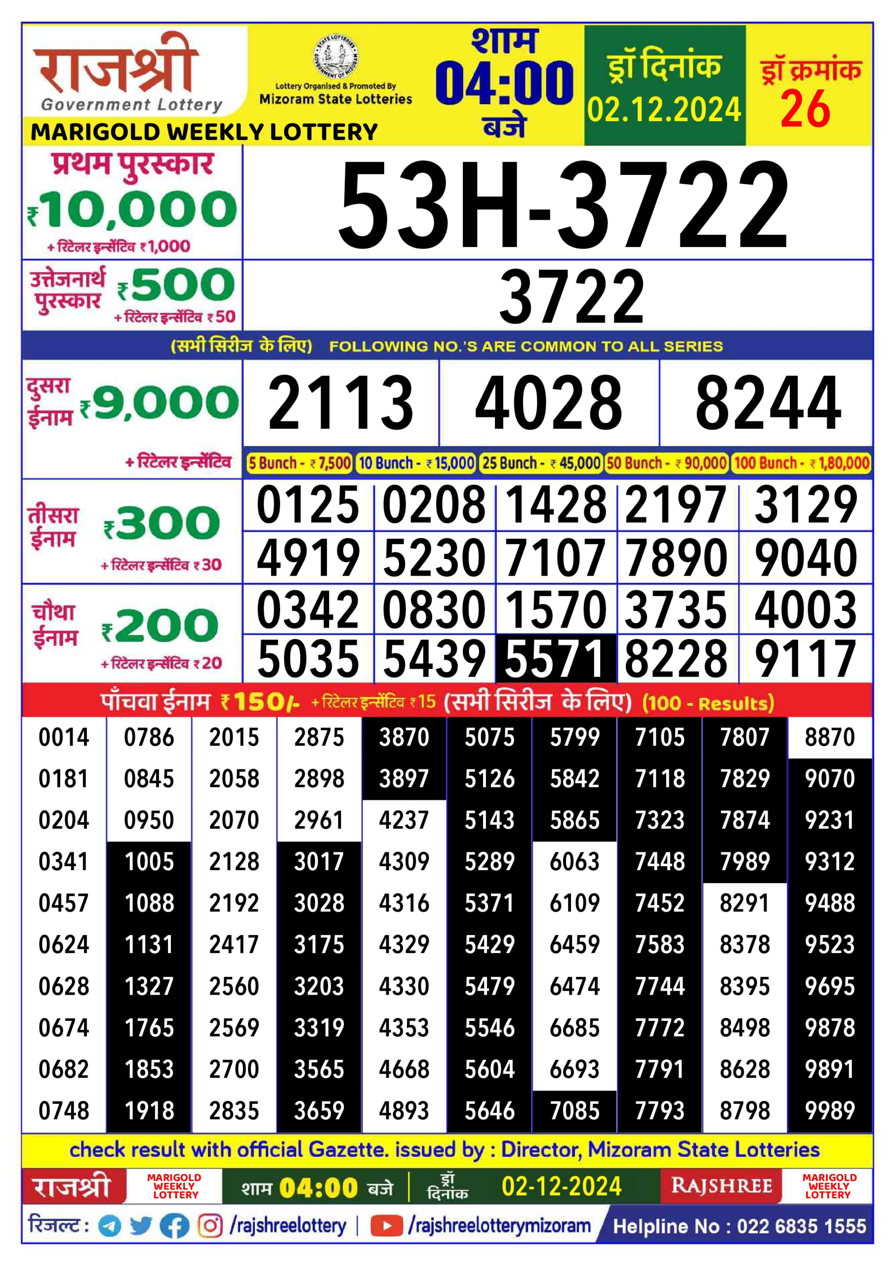 राजश्री लाटरी का 4 बजे का रिज़ल्ट दिनांक 21.9.25