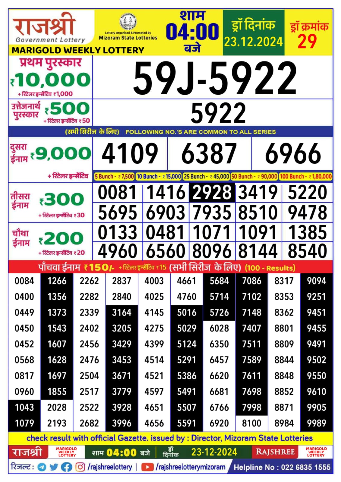 राजश्री लाटरी का 4 बजे का रिज़ल्ट दिनांक 09.10.25