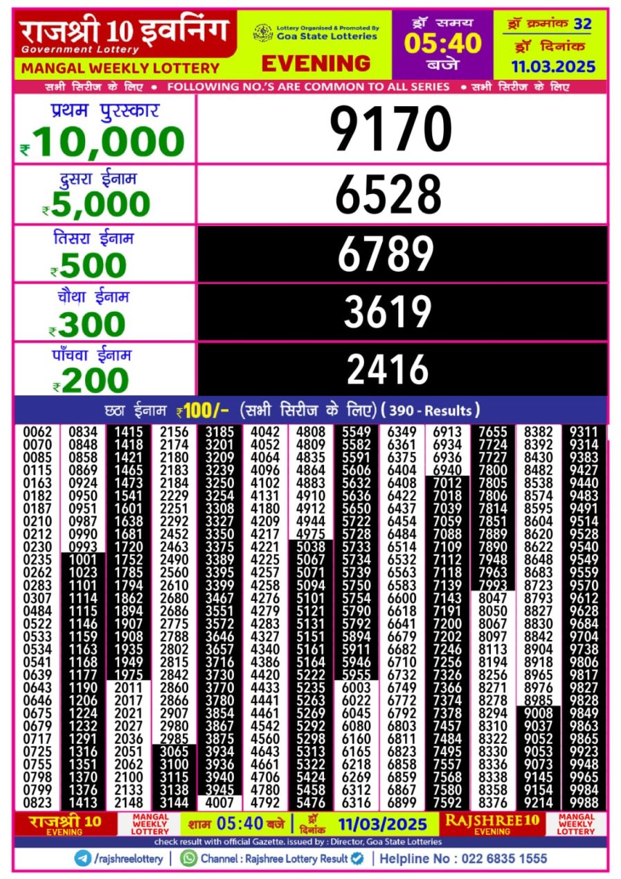राजश्री 10 लाटरी का का शाम 5.40 बजे का रिज़ल्ट दिनांक 26.10.25