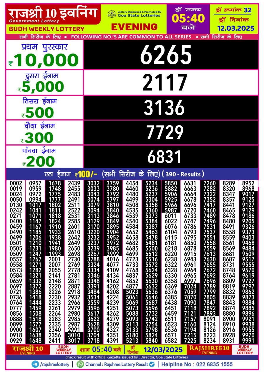 राजश्री 10 लाटरी का का शाम 5.40 बजे का रिज़ल्ट दिनांक 27.10.25