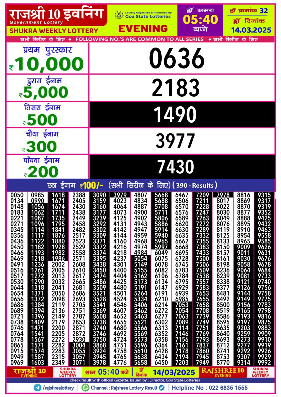 राजश्री 10 लाटरी का का शाम 5.40 बजे का रिज़ल्ट दिनांक 29.10.25