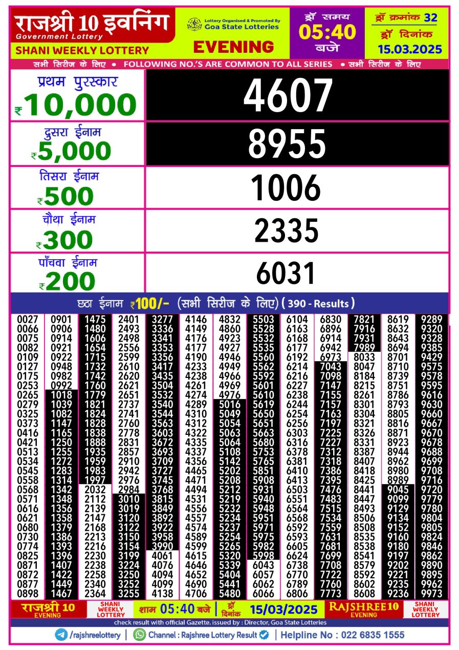 राजश्री 10 लाटरी का का शाम 5.40 बजे का रिज़ल्ट दिनांक 30.10.25