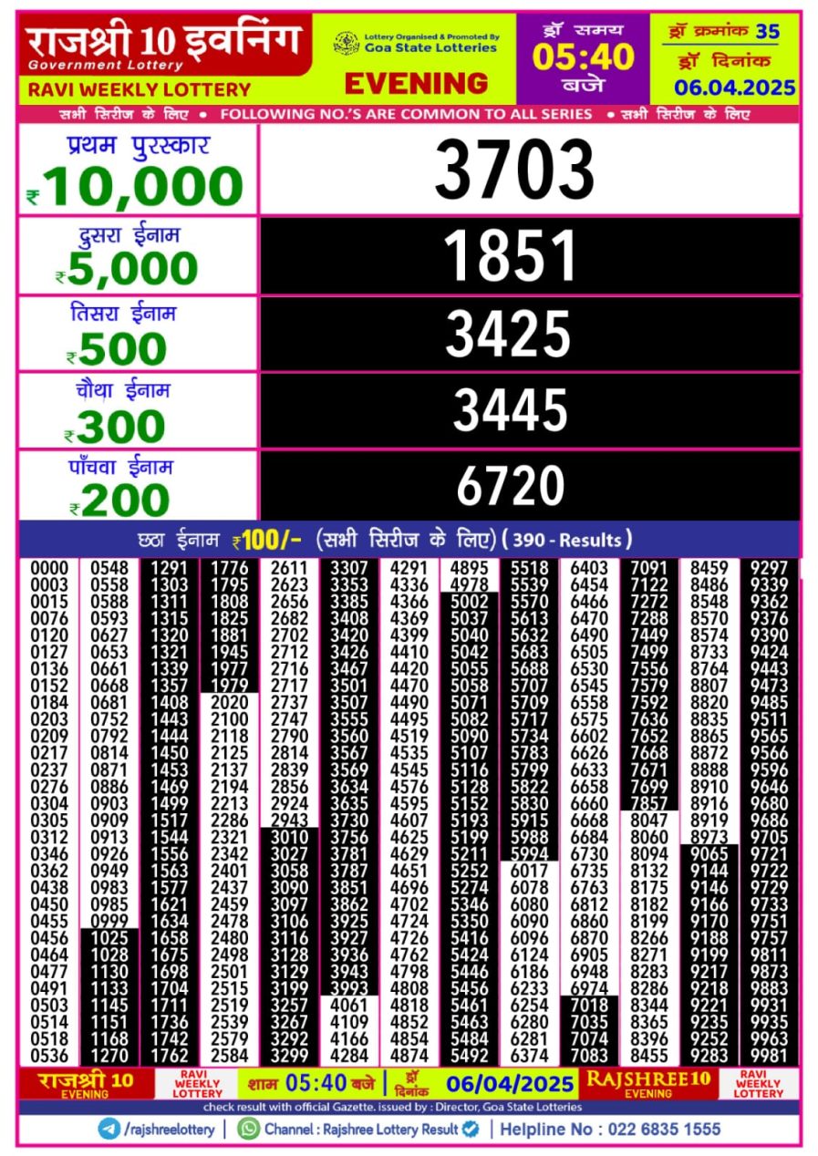 राजश्री 10 लाटरी का का शाम 5.40 बजे का रिज़ल्ट दिनांक 21.11.25
