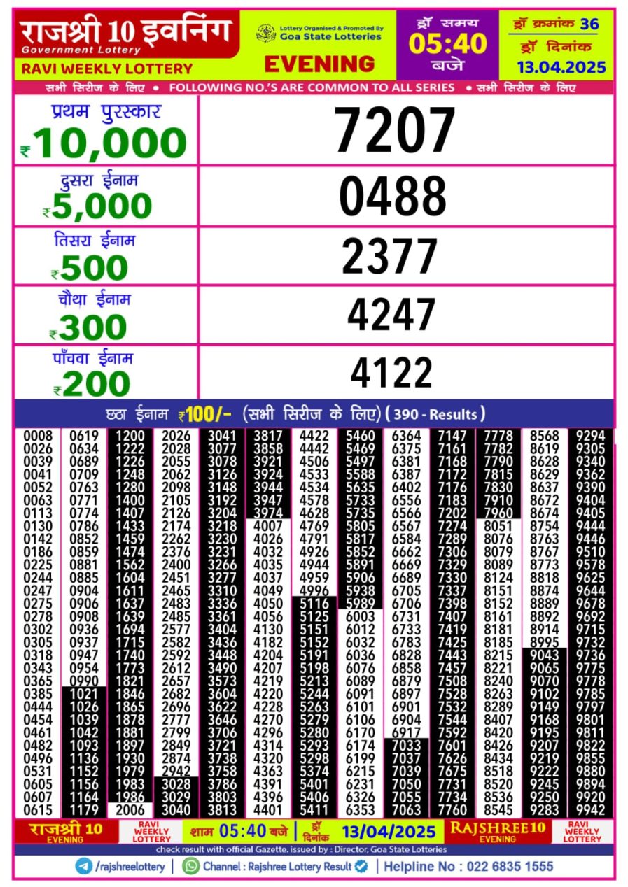 राजश्री 10 लाटरी का का शाम 5.40 बजे का रिज़ल्ट दिनांक 23.11.25