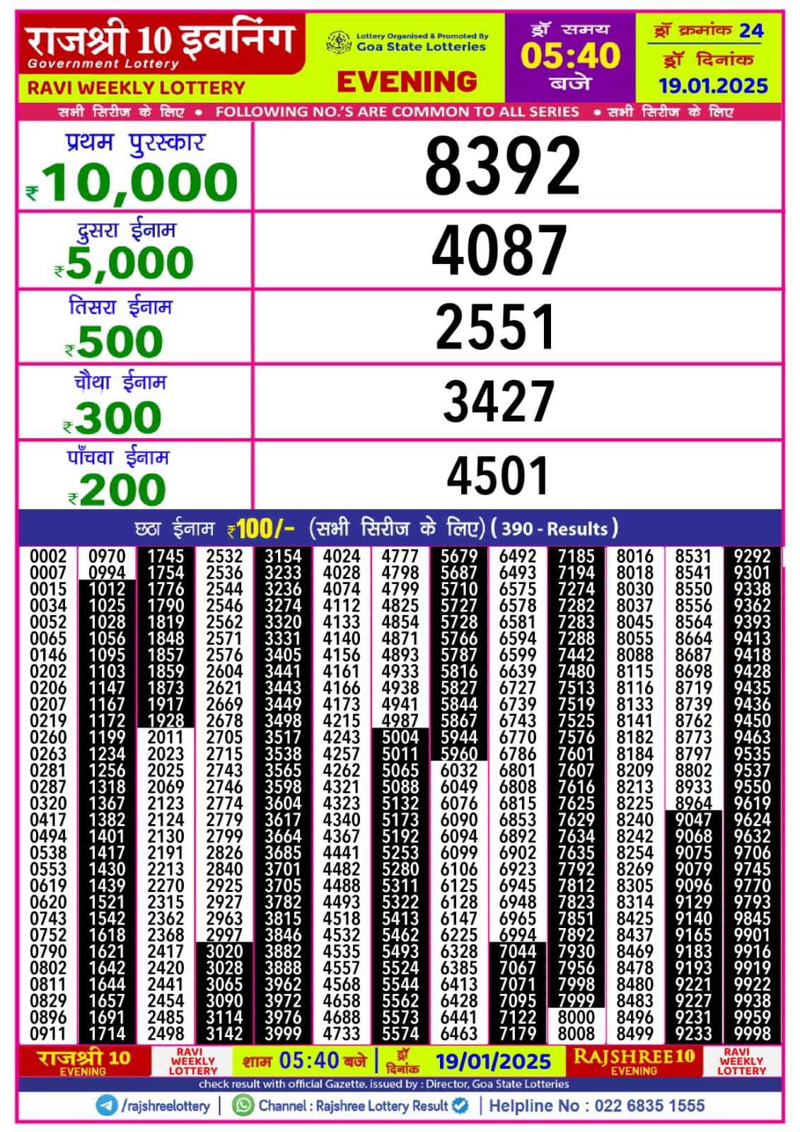राजश्री 10 लाटरी का का शाम 5.40 बजे का रिज़ल्ट दिनांक 06.9.25