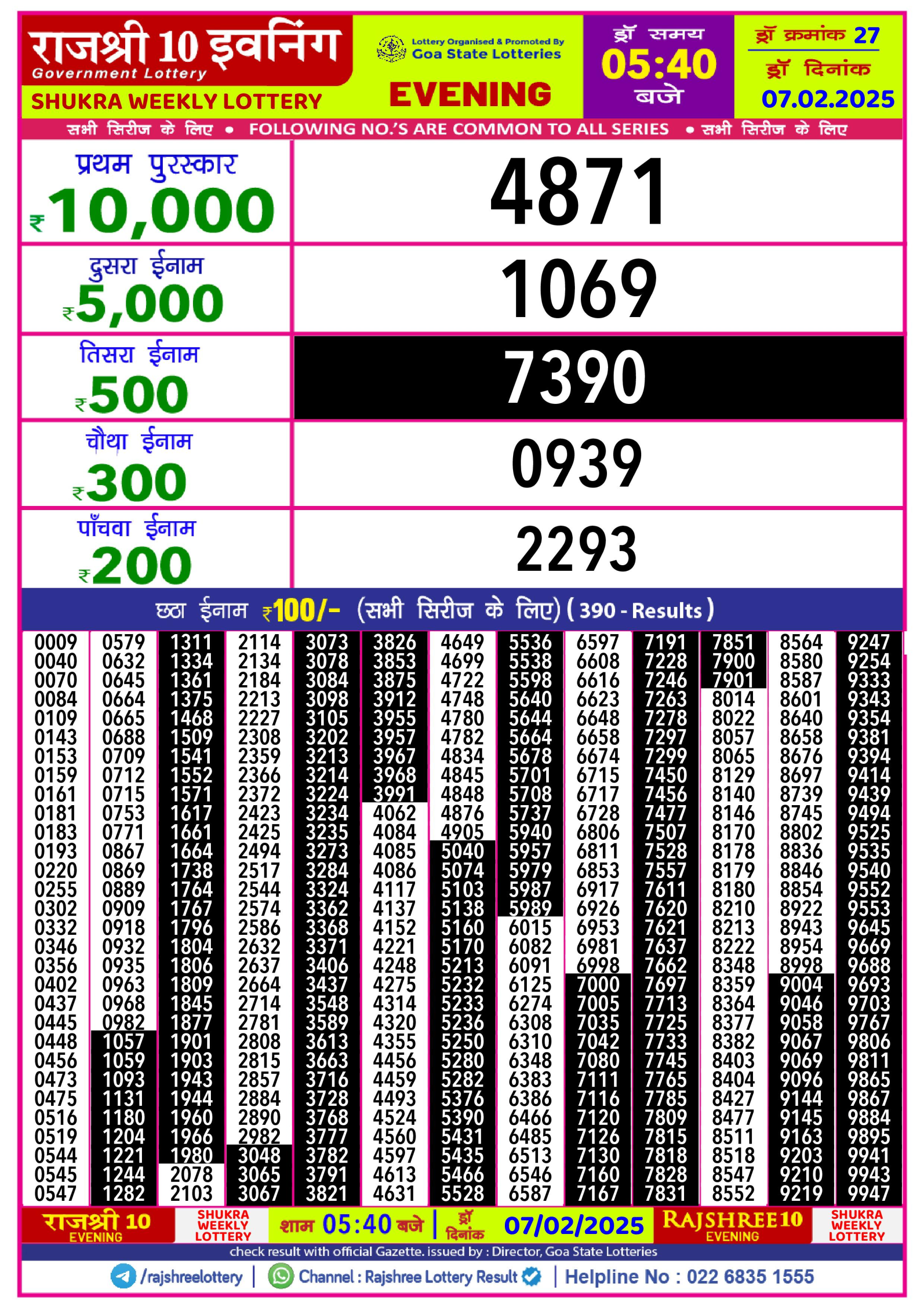 राजश्री 10 लाटरी का का शाम 5.40 बजे का रिज़ल्ट दिनांक 24.9.25