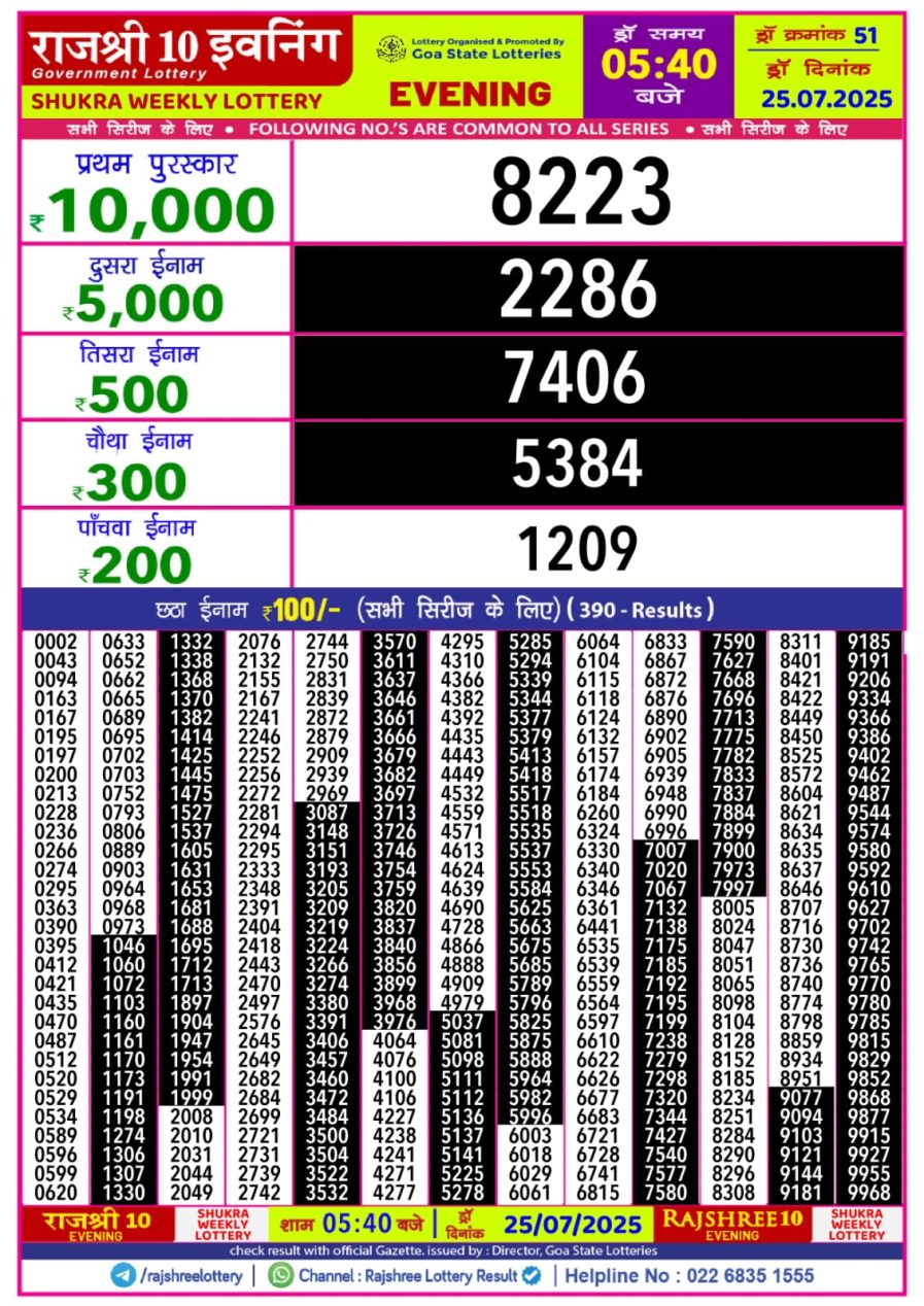 राजश्री 10 लाटरी का का शाम 5.40 बजे का रिज़ल्ट दिनांक 25.7.25