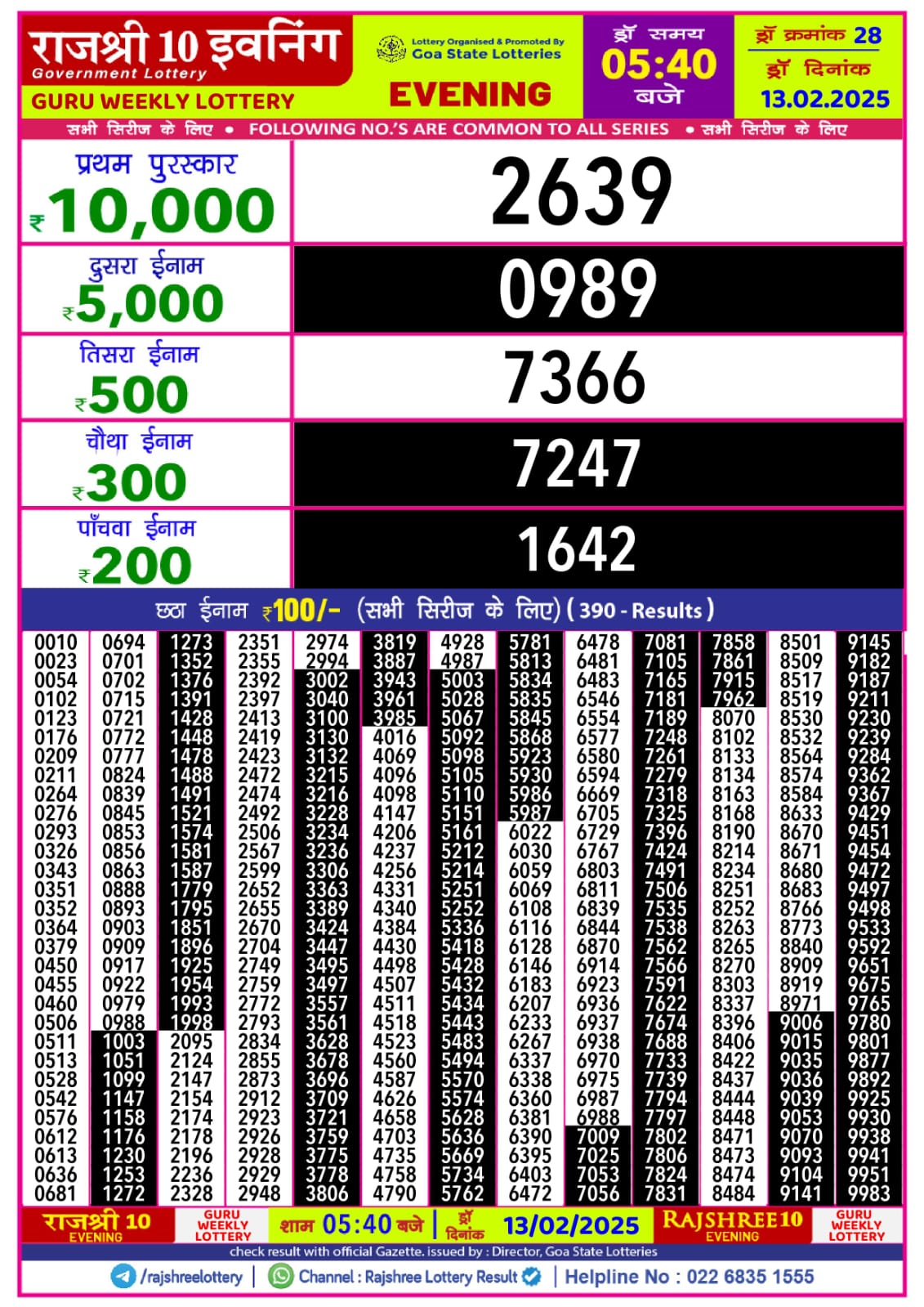 राजश्री 10 लाटरी का का शाम 5.40 बजे का रिज़ल्ट दिनांक 30.9.25