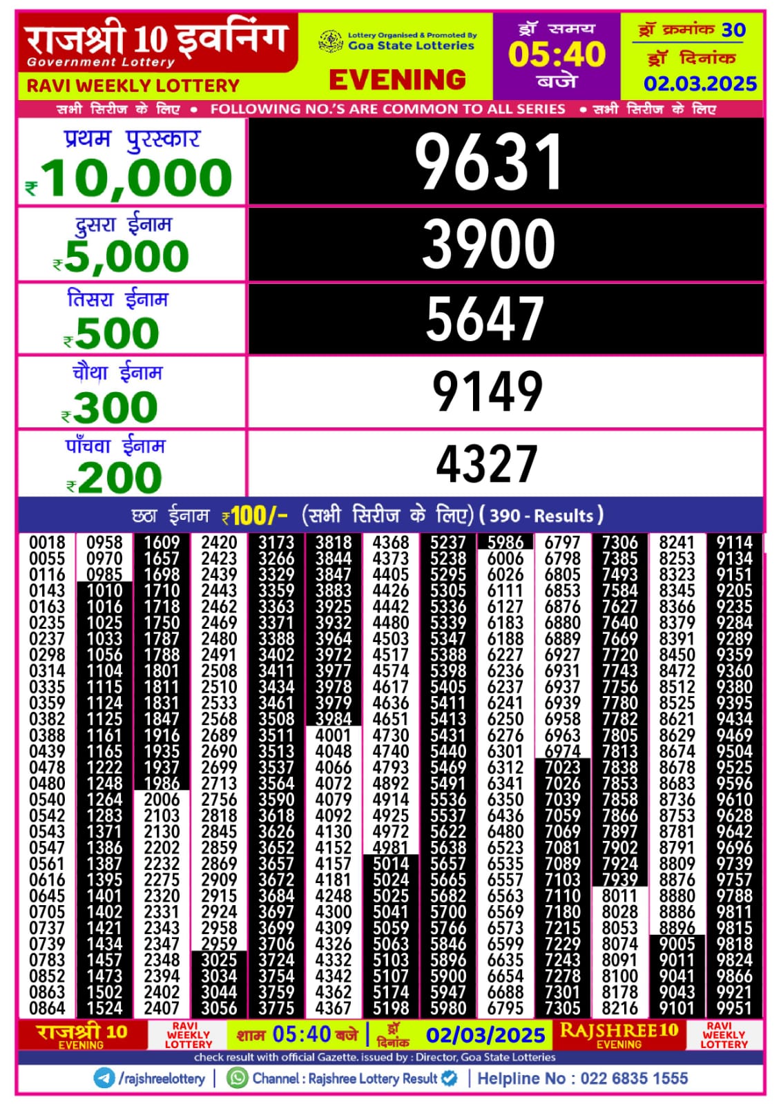 राजश्री 10 लाटरी का का शाम 5.40 बजे का रिज़ल्ट दिनांक 17.10.25