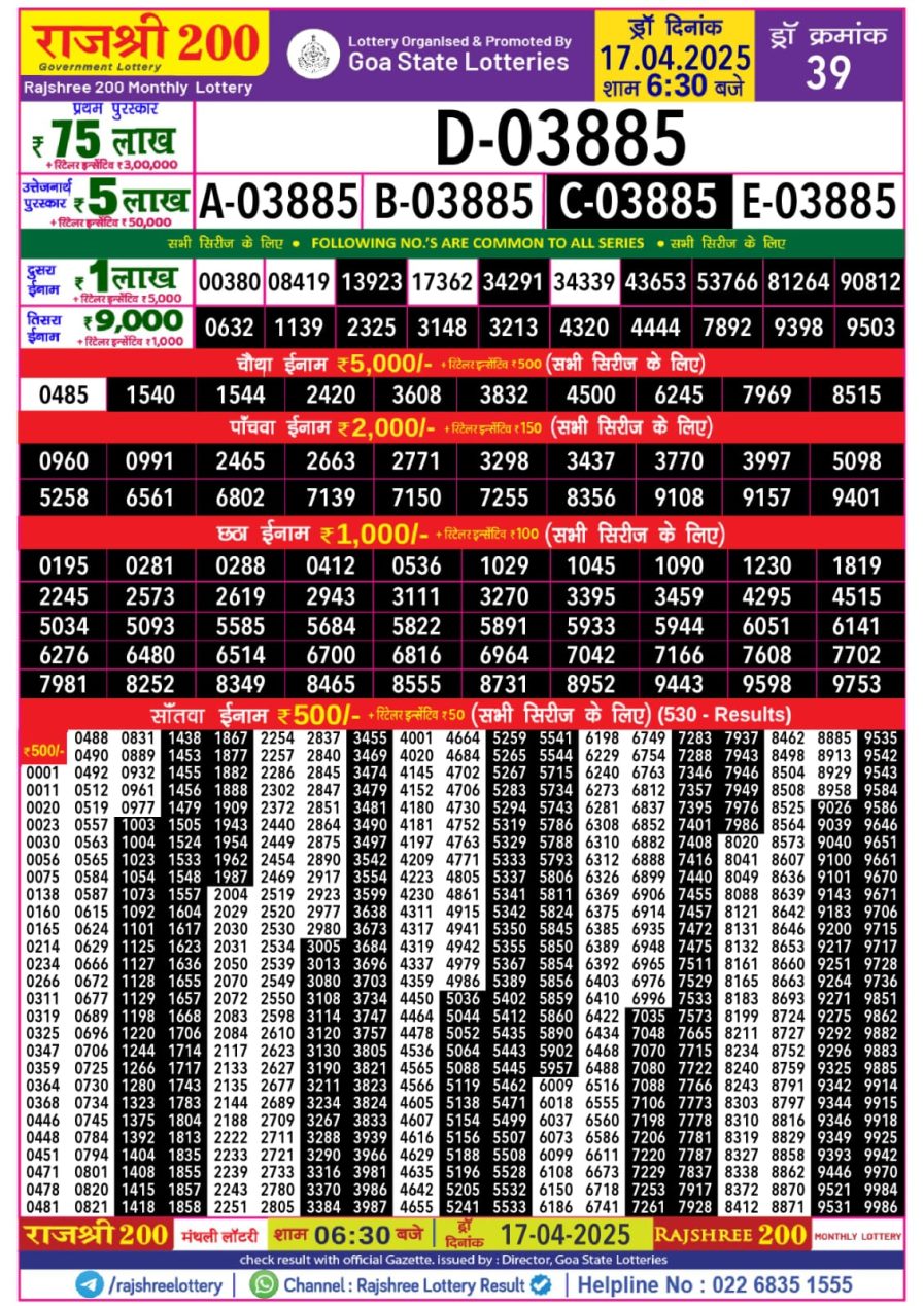 राजश्री 200 मंथली लॉटरी रिजल्ट  18.9.25