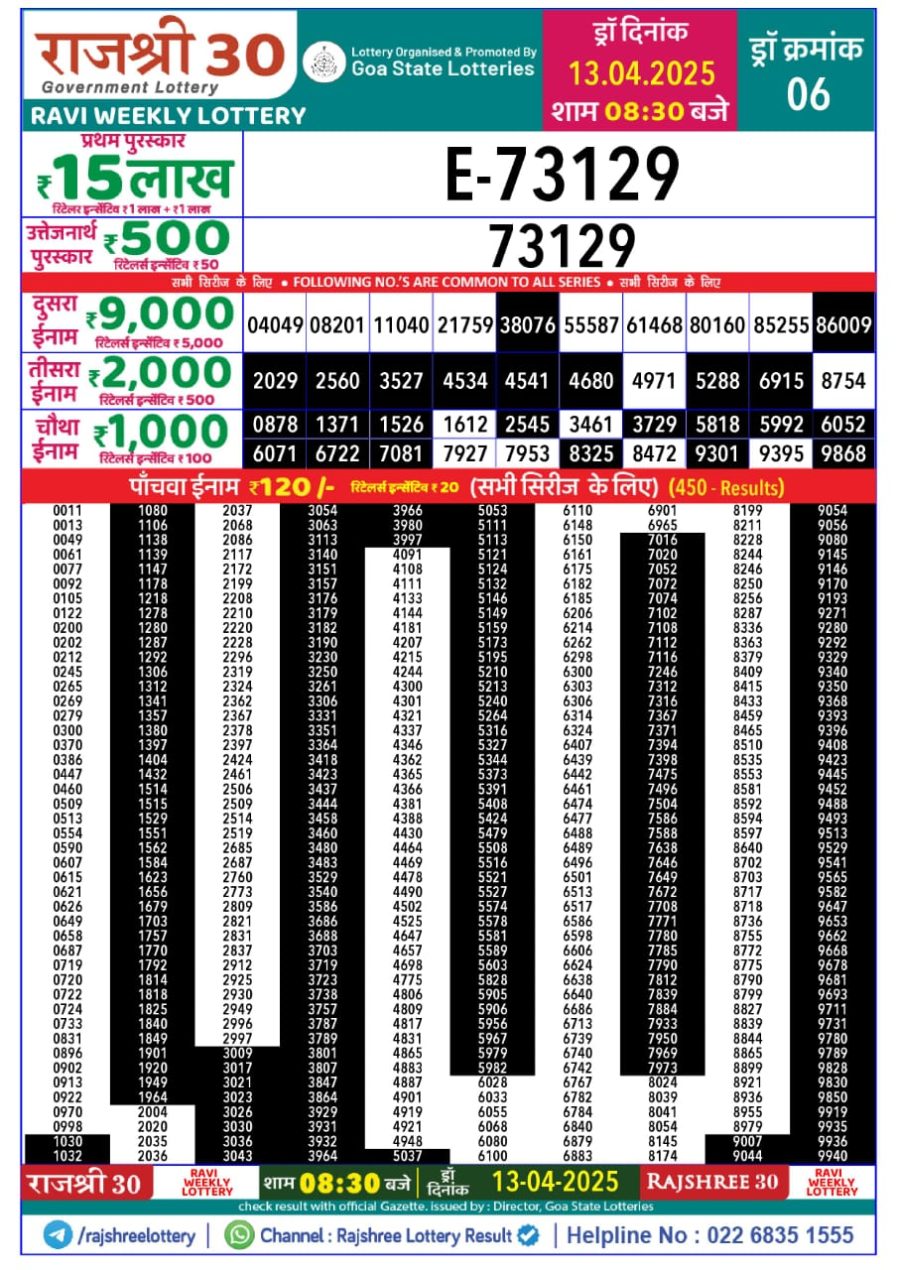 राजश्री 30 लाटरी का रात 8:30 बजे का रिज़ल्ट दिनांक 19.8.25