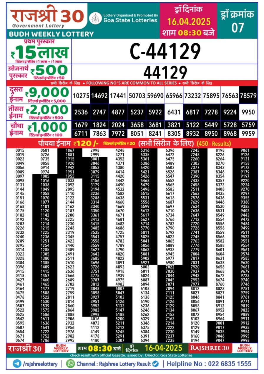 राजश्री 30 लाटरी का रात 8:30 बजे का रिज़ल्ट दिनांक 16.8.25