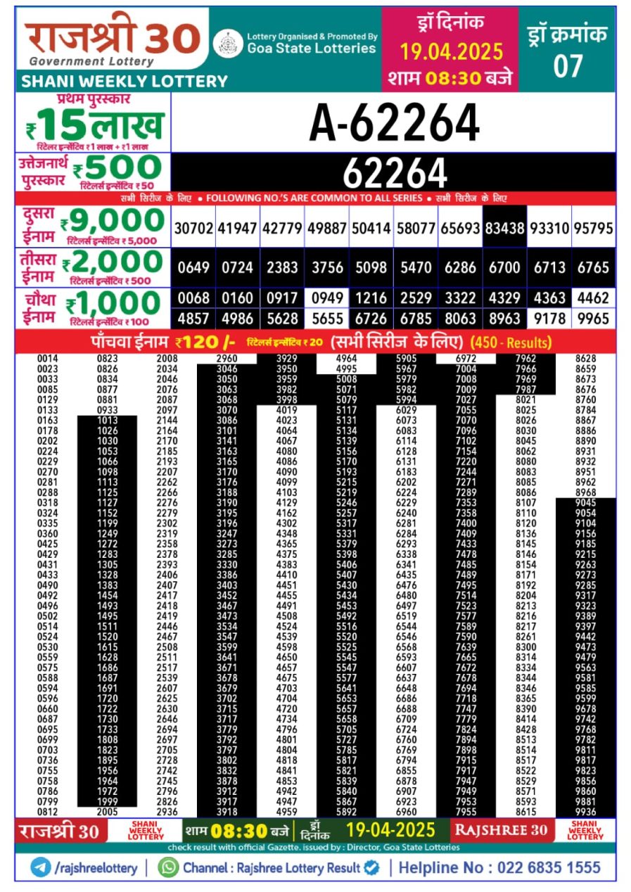 राजश्री 30 लाटरी का रात 8:30 बजे का रिज़ल्ट दिनांक 04.9.25