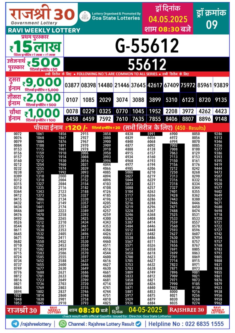 राजश्री 30 लाटरी का रात 8:30 बजे का रिज़ल्ट दिनांक 19.9.25